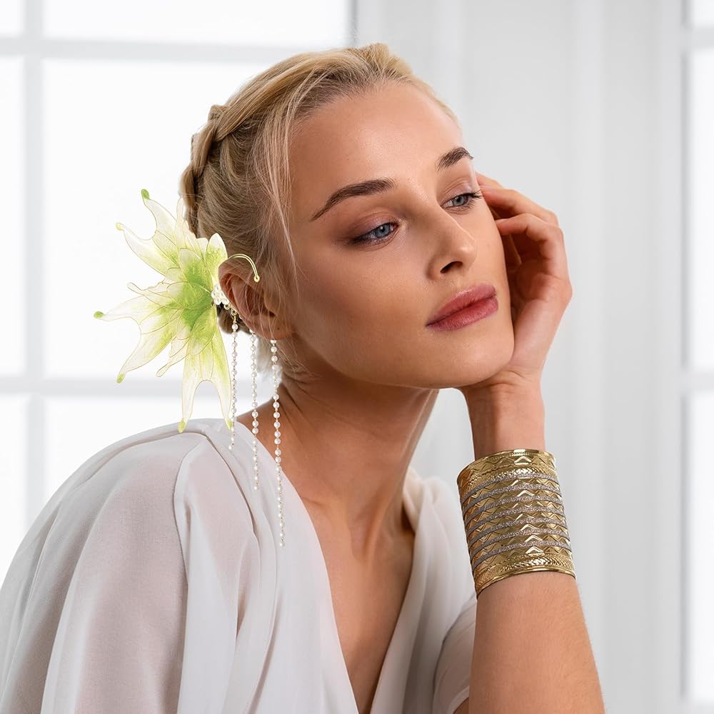🧜🧜 Handcrafted للحصول على جاذبية إضافية: مصنوعة من الحب ، تحتوي هذه الأصفاد الأذن على بتلات على شكل اليد وتفاصيل اللؤلؤ الجميلة التي تجعلها فريدة من نوعها. إنها الهدية المثالية لأي شخص يحب الجنيات أو الزهور أو القليل من التألق السحري في حياته - Guarnanteed لجلب الابتسامات!