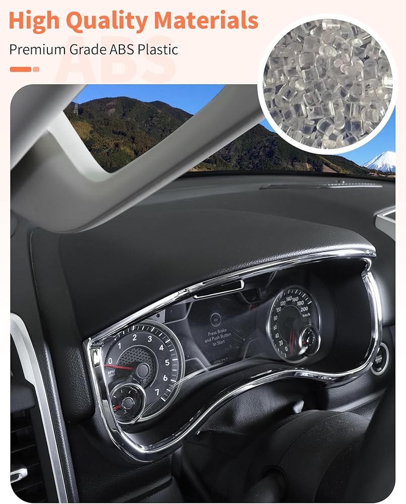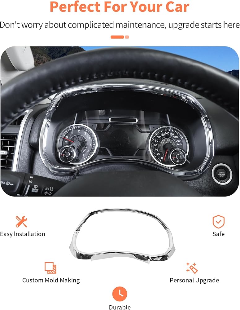 At the border between city and wilderness,2018 and beyond for Dodge RAM is gearing up. Its owner, a brave man who loved to explore, always felt that there was something unique missing in the cockpit. That all changed with Chrome dashboard frame.It accurately fits the for Dodge RAM instrument panel, metallic chrome luster, not only instantly enhances the interior grade, but also in every departure, bringing an unparalleled texture experience to the owner. The wilderness road is more charming because of it.In urban travel, it makes the car the focus of attention. It opens a new chapter in the luxury of for Dodge RAM interiors and makes driving the ultimate pleasure.