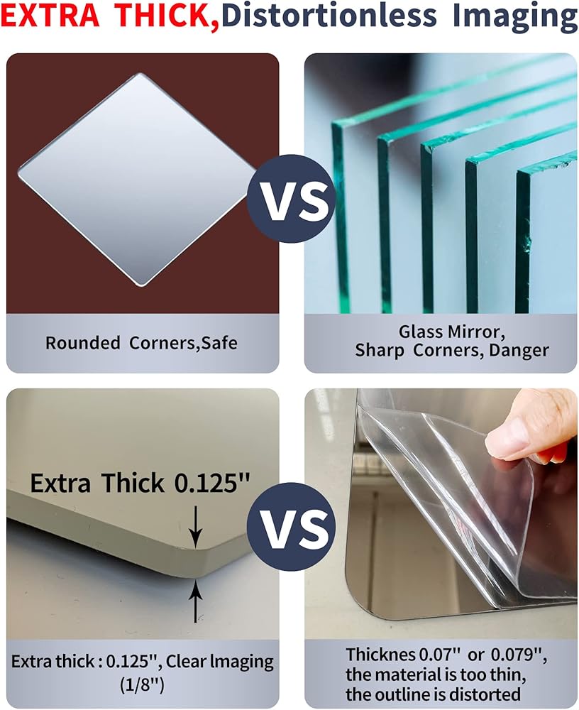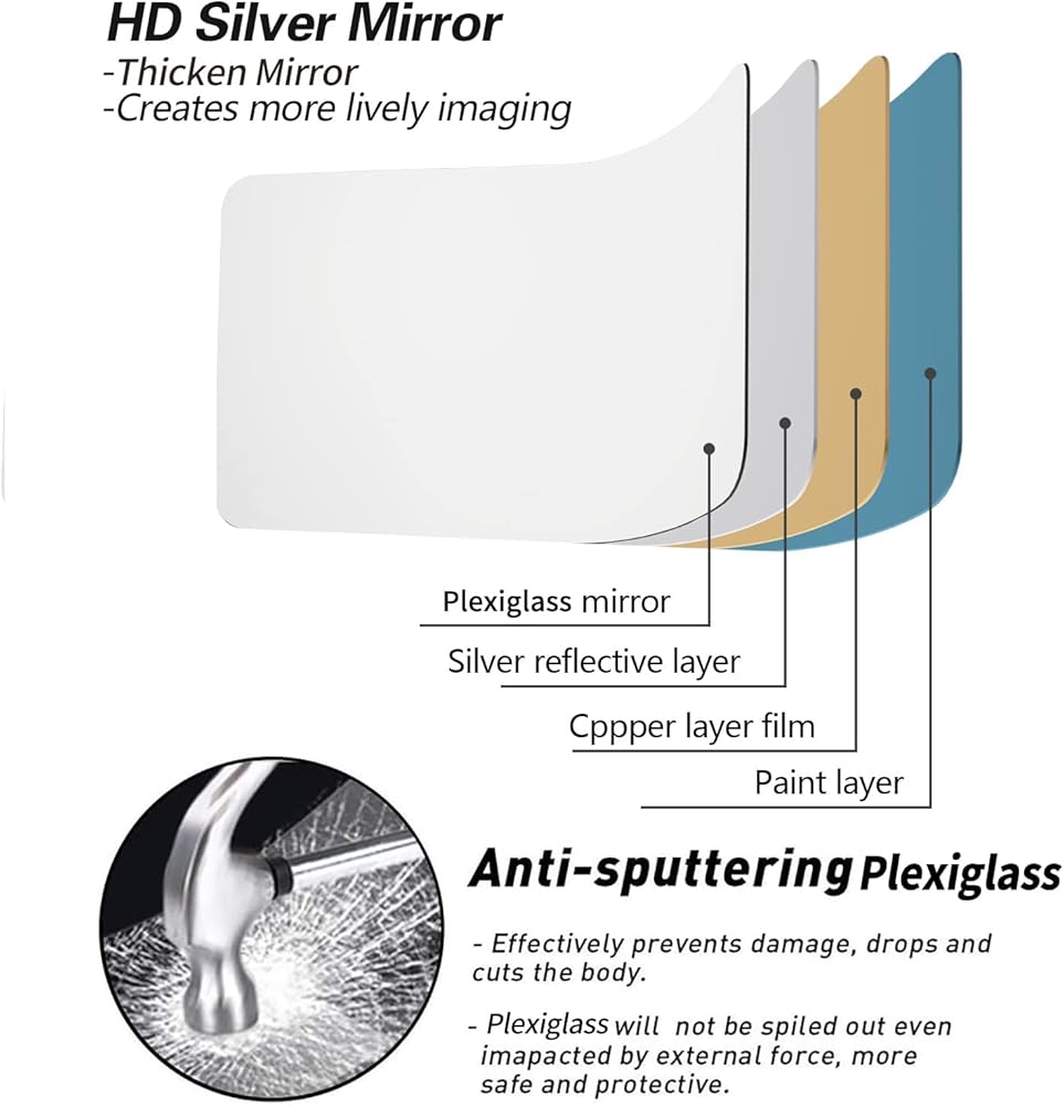 (مواد فاخرة): لن تتلف المرآة الكاملة ذات الطول الكامل من زجاجي ، مرآة مقاومة للتشويش ، ثني مرآة أكريليك ، مرآة الجدار ، لن تتلف إذا تم إسقاطها على الأرض عن طريق الخطأ ، ومرآة غير قابلة للكسر ليست مرآة زجاجية حقيقية ، ومرايا للجدار آمنة للغاية ، ويمكن لأطفالك والحيوانات الأليفة أن تلعب بأمان بأمان