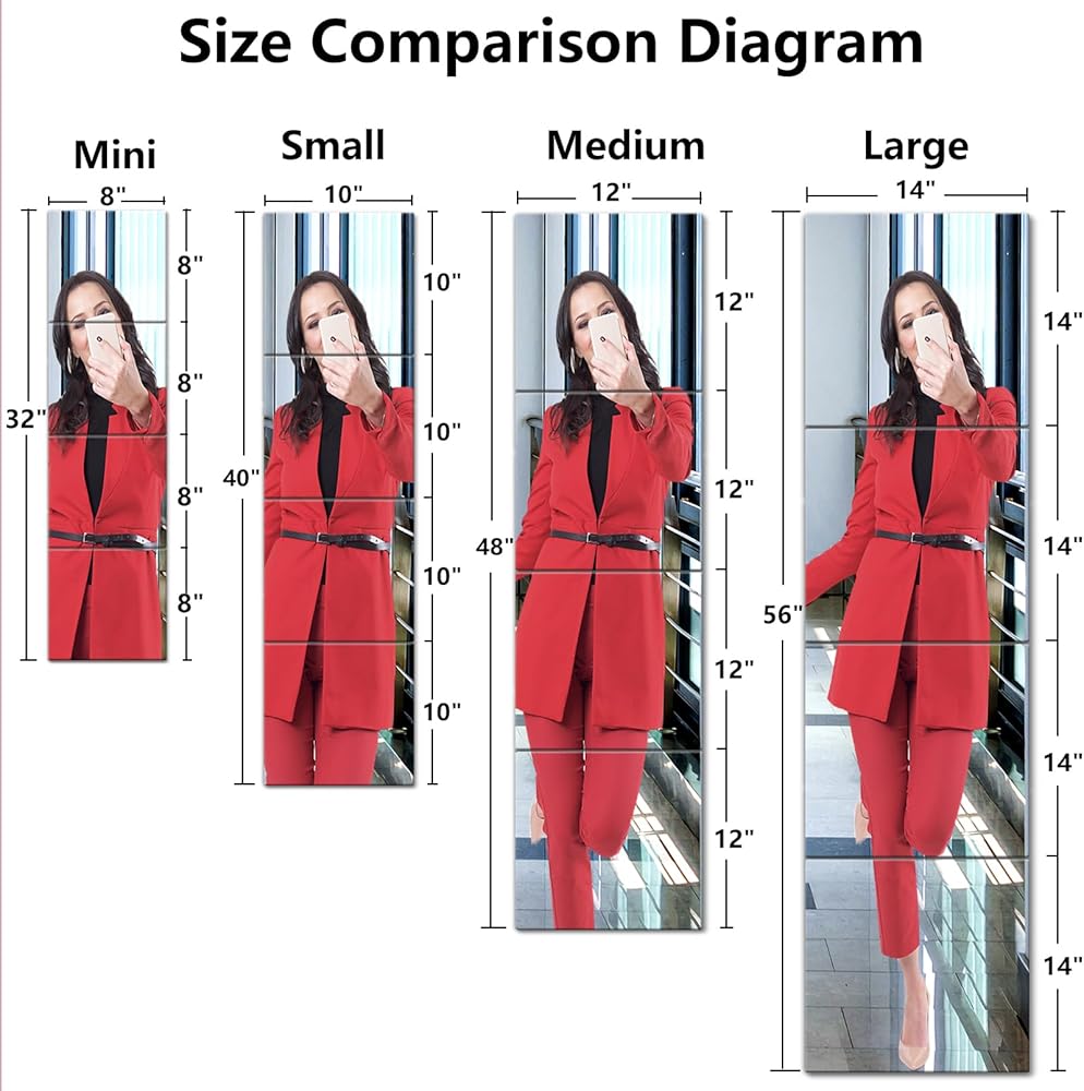 (سميك سوبر): سمك المرآة الكامل طوله: 0.1 "، الطول الكامل المرآة حوالي 48" لتر × 12 "W ، Espejos Para Dormitorio (حوالي 4 أجزاء 12" x12 ") ، لأن سمك الحائط لدينا كامل طول الكامل هو 0.1" سميكة ، وبالتالي فإن التعريف مرتفع جدا ، الباب مرآة الصورة واضحة وغير مستقلة.