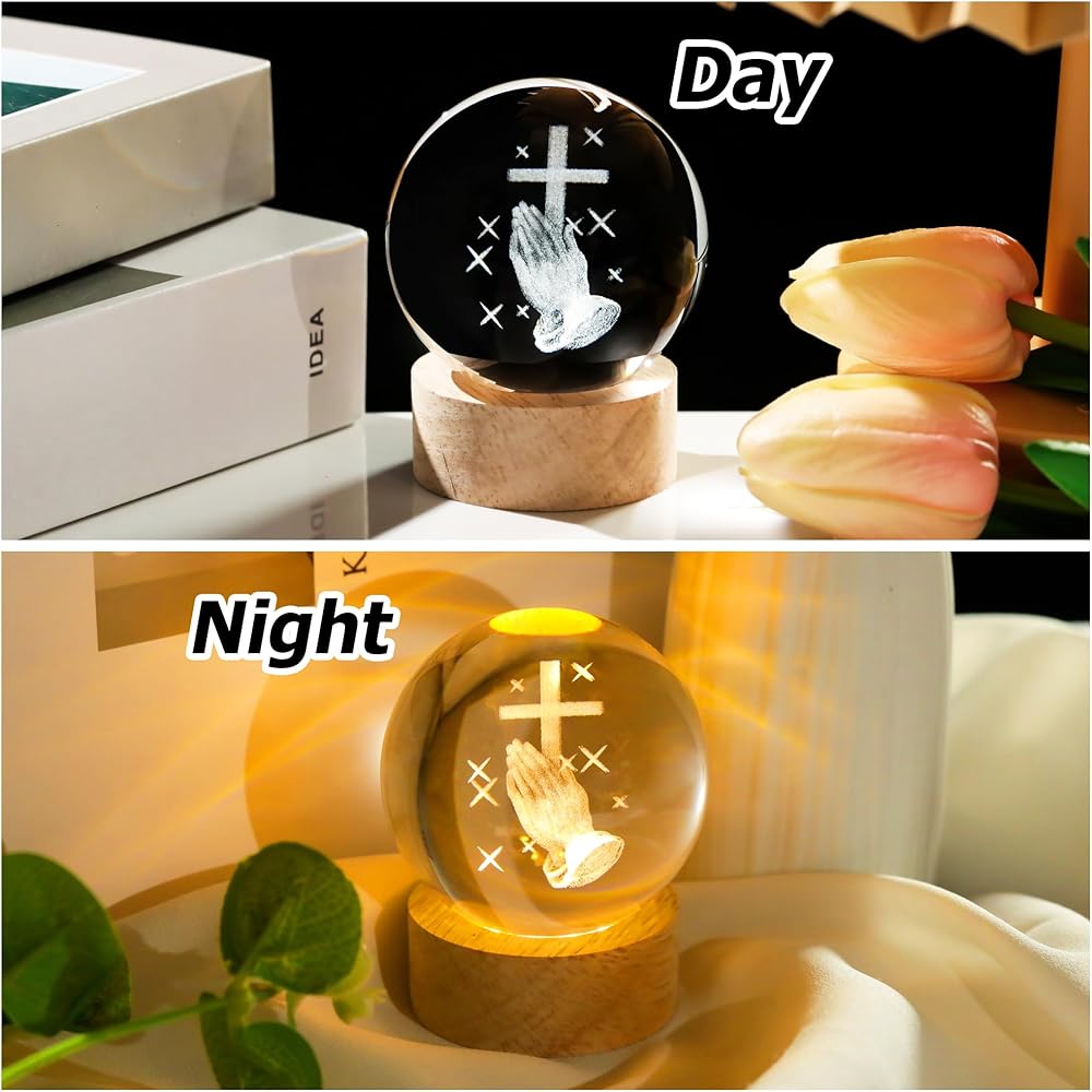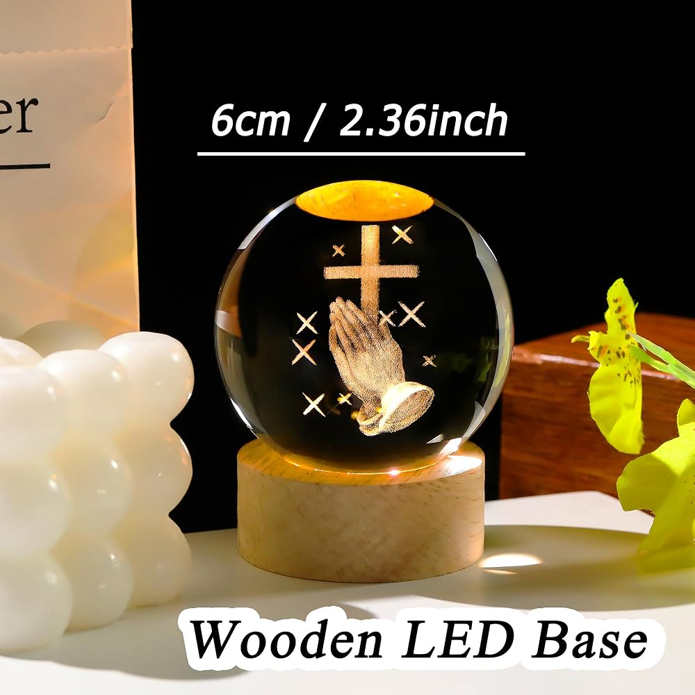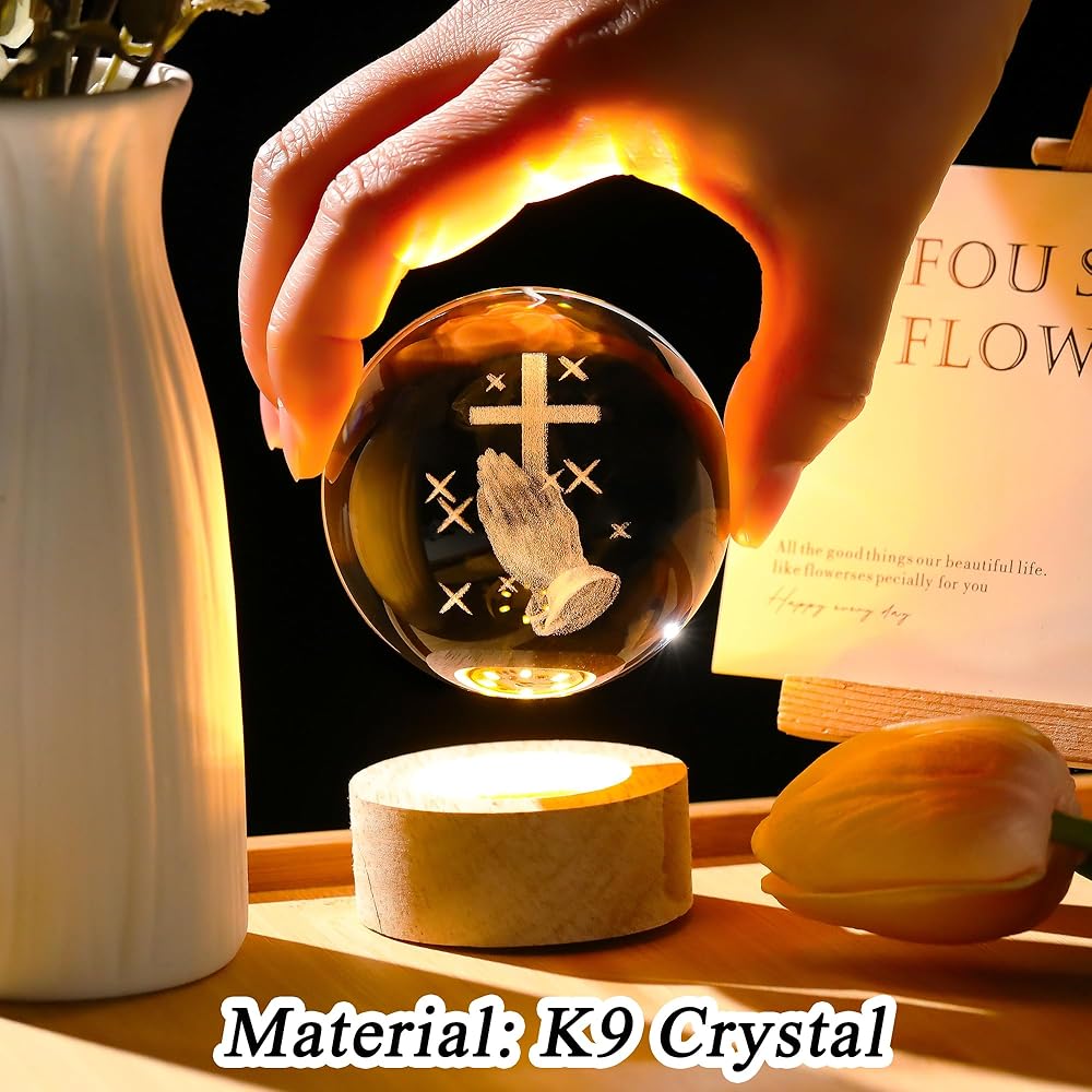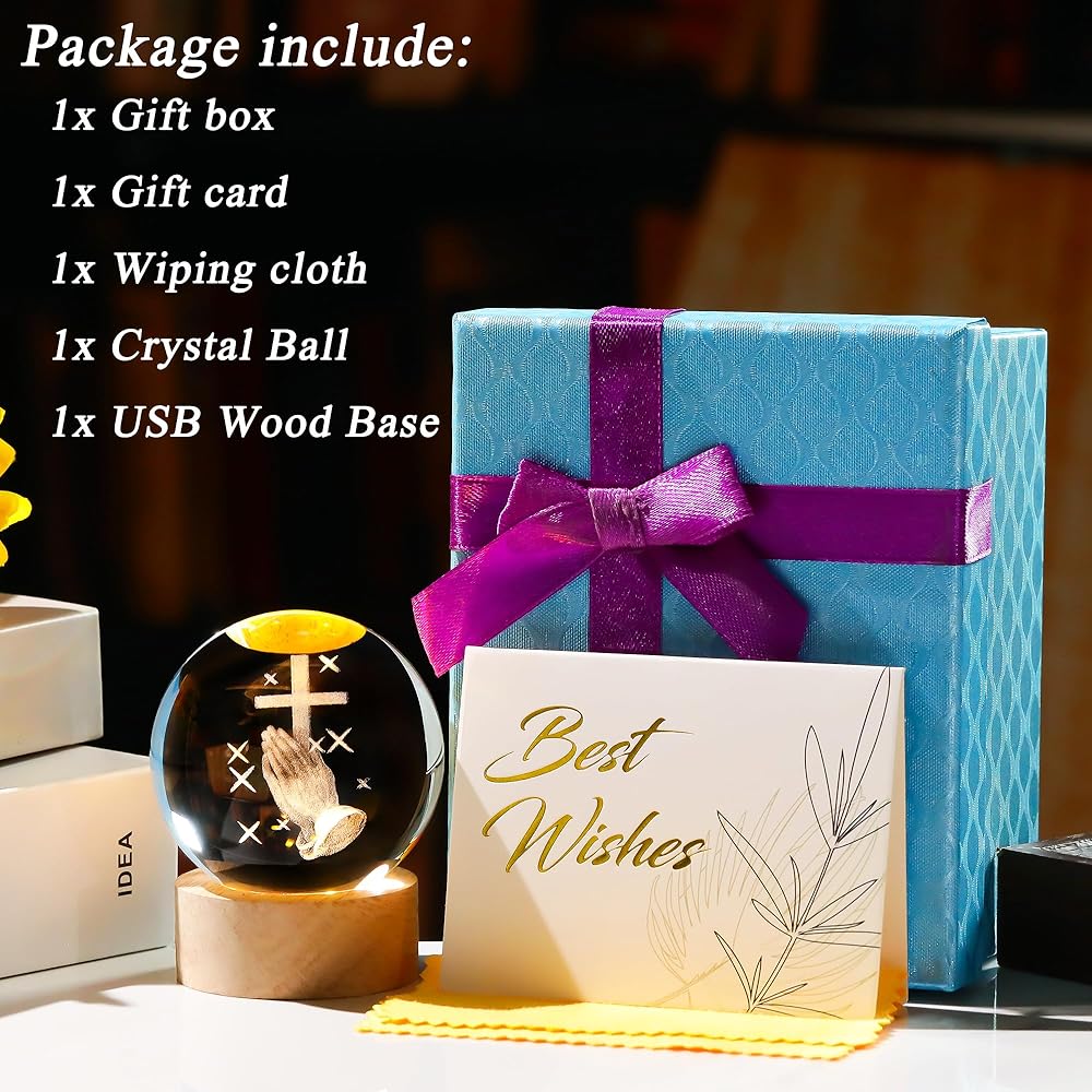 Christian Gifts for Women Men - The giftable box with foam to secure packaging ensures zero damage during shipping. Including a crystal ball, USB wooden base, clean cloth, and a greeting note card, which keeps the crystal keep clearing maintaining its brilliance. A timeless Christian gift for women, mothers, wives, or friends, this set inspires faith and connection through its timeless beauty. Whether as a housewarming gift for devout Christians, a sympathy present, or a daily prayer companion, this multifunctional piece blends artistry with spirituality.