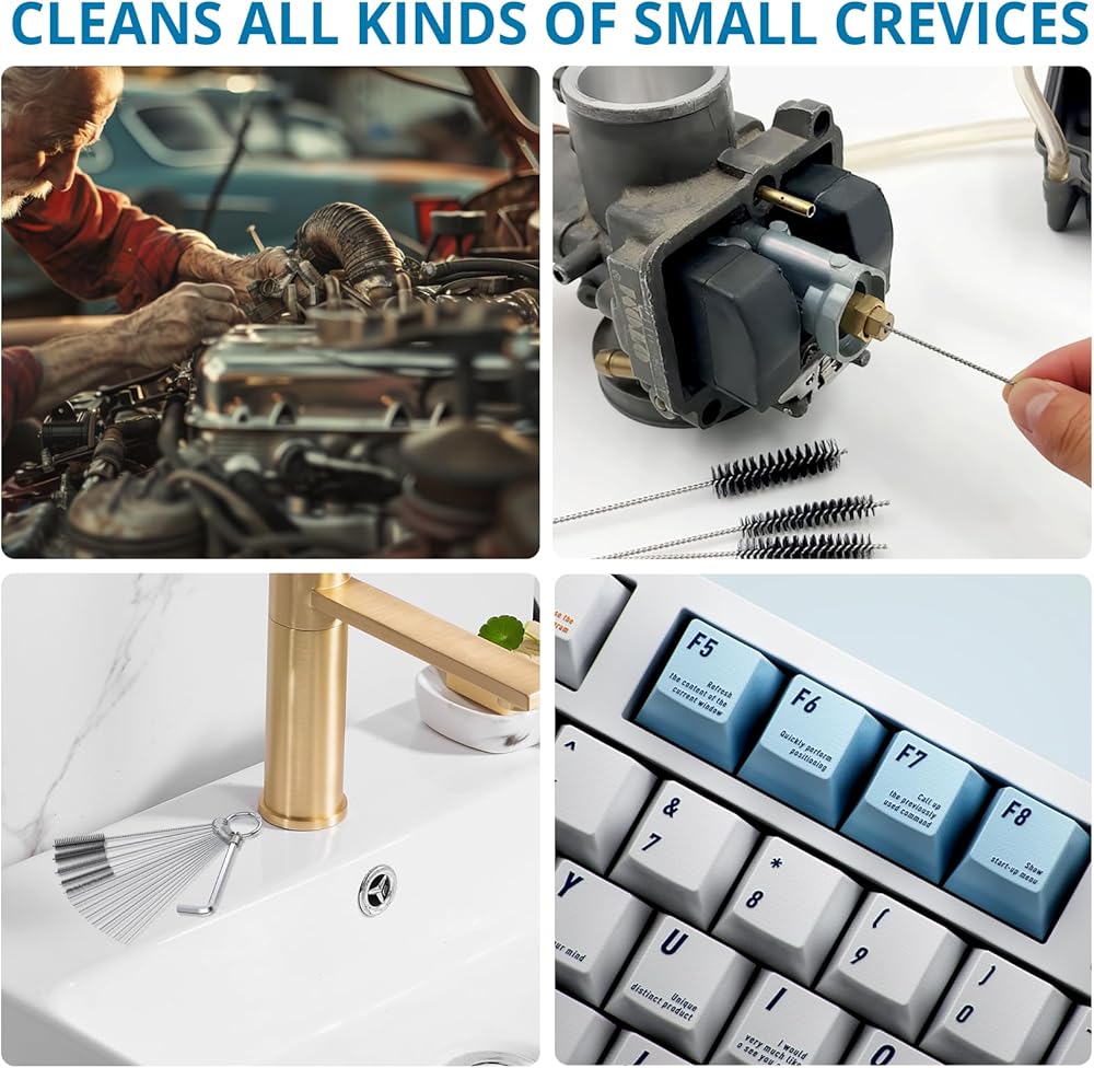 استخدام واسع النطاق: الفرش والإبر مفيدة لتنظيف الفتحات الصغيرة مثل الفوهات والأدوات الهوائية ومواقد التخييم وما إلى ذلك. كما أنها مناسبة لجميع الدراجات النارية والسيارات الرباعية واللحام وجهاز الوشم ومعدات العشب ومنفاخ الثلج والعديد من المكربن الرياضية الأخرى.