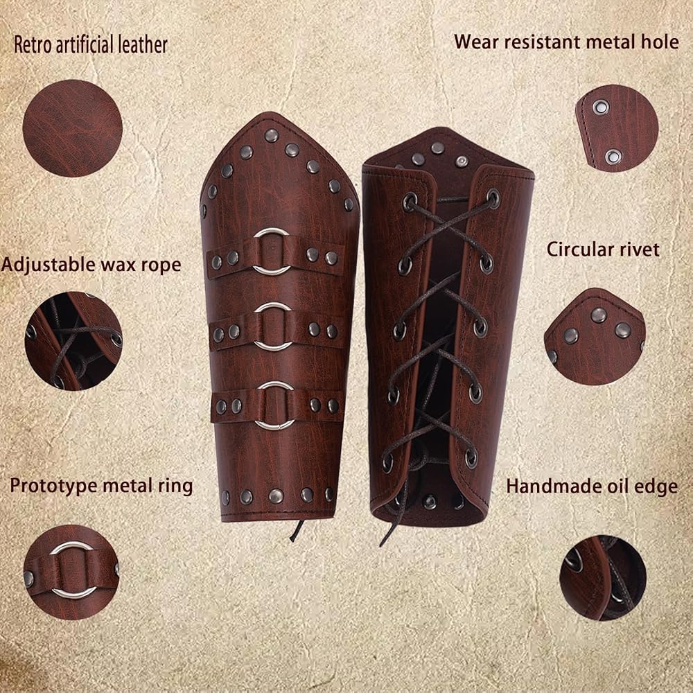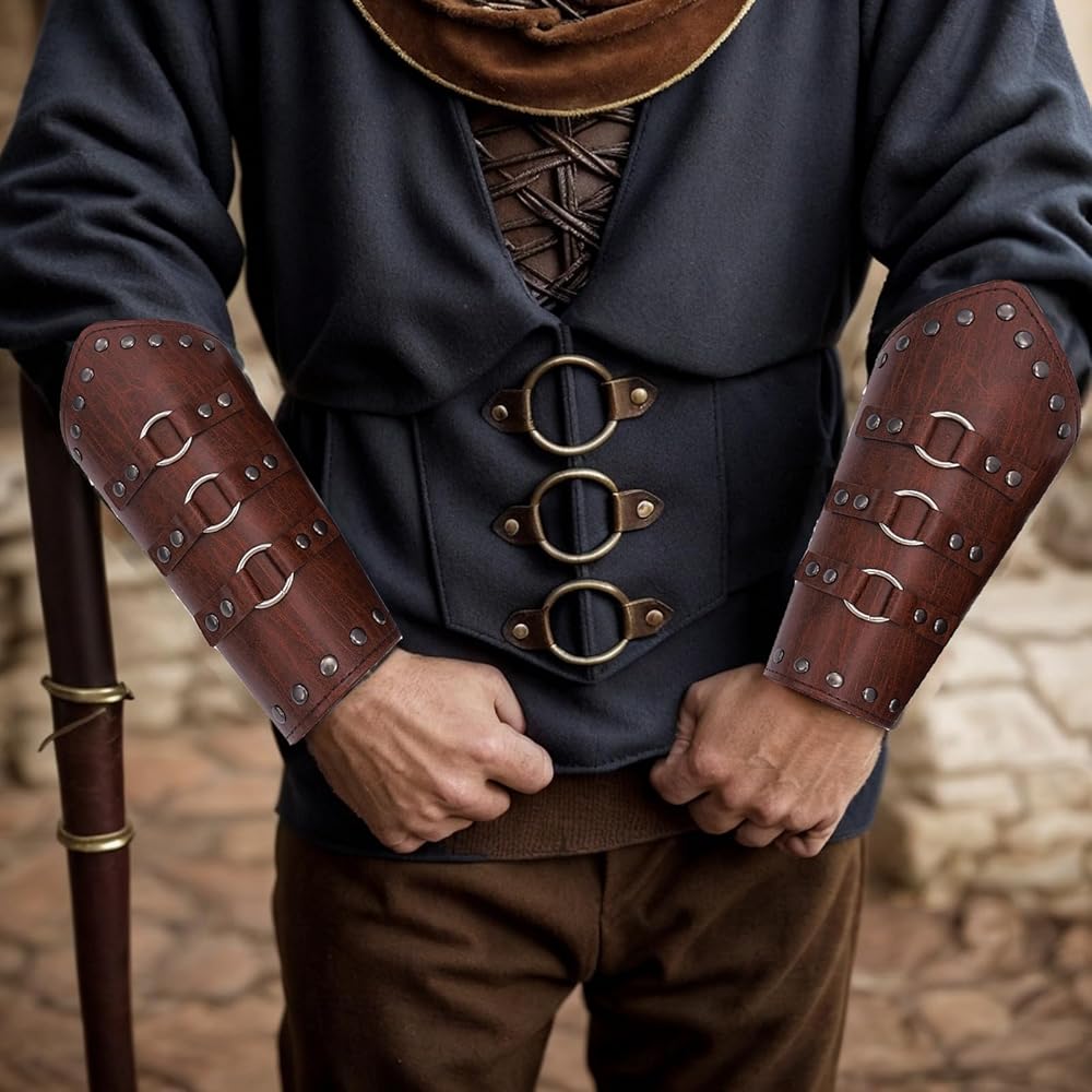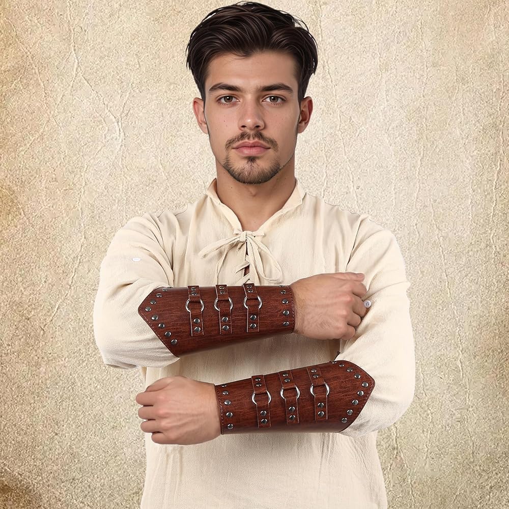 Step into the realm of legends with our leather arm protector, a masterpiece of medieval craftsmanship designed for the modern Viking or archer. This invincible archery arm guard doubles as a striking piece of viking armor, perfect for those who revel in wearing armor with pride. Crafted from premium leather, these leather bracers for men and women are not just accessories but a statement of strength and style. Whether you're channeling your inner barbarian, knight, or samurai, our leather arm guards ensure you're battle-ready in any costume scenario. From viking shield bearers to cosplay enthusiasts of the infinity gauntlet or wolverine claws, this medieval accessory transcends time and tales. Ideal for welding, archery, or completing your viking costume for men and women, these leather armor pieces offer unparalleled protection and durability. Elevate your cosplay, be it invincible cosplay or medieval gauntlets, with our versatile arm cuffs and sleeves. Designed to mimic the resilience of kevlar sleeves, these forearm guards are perfect for anyone from the winter soldier arm enthusiasts to those donning a viking helmet. Not just an arm guard, but a piece of history and fantasy, our leather armor for women and men is the ultimate accessory for anyone looking to embrace the spirit of the viking, barbarian, or knight. Whether it's for a cloak, roman armor, or samurai armor, these bracers for men and leather armor women are your gateway to an epic adventure. Make every moment legendary with our leather arm guards, the perfect blend of medieval armor and modern design.