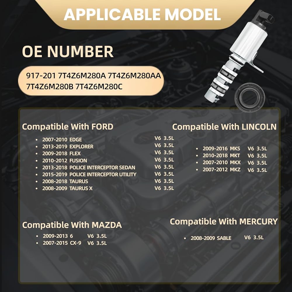 متغير المحرك توقيت توقيت الملف اللولبي VVT متوافق مع Explorer Taurus Fusion Edge Sable MKZ MKX CX-9 Flex MKS MKT MKT Police Interceptor سيدان 917-201 7T4Z6M280A 7T4Z6M280AA 7T4Z6M280B 7T4Z6M280C 3.5L