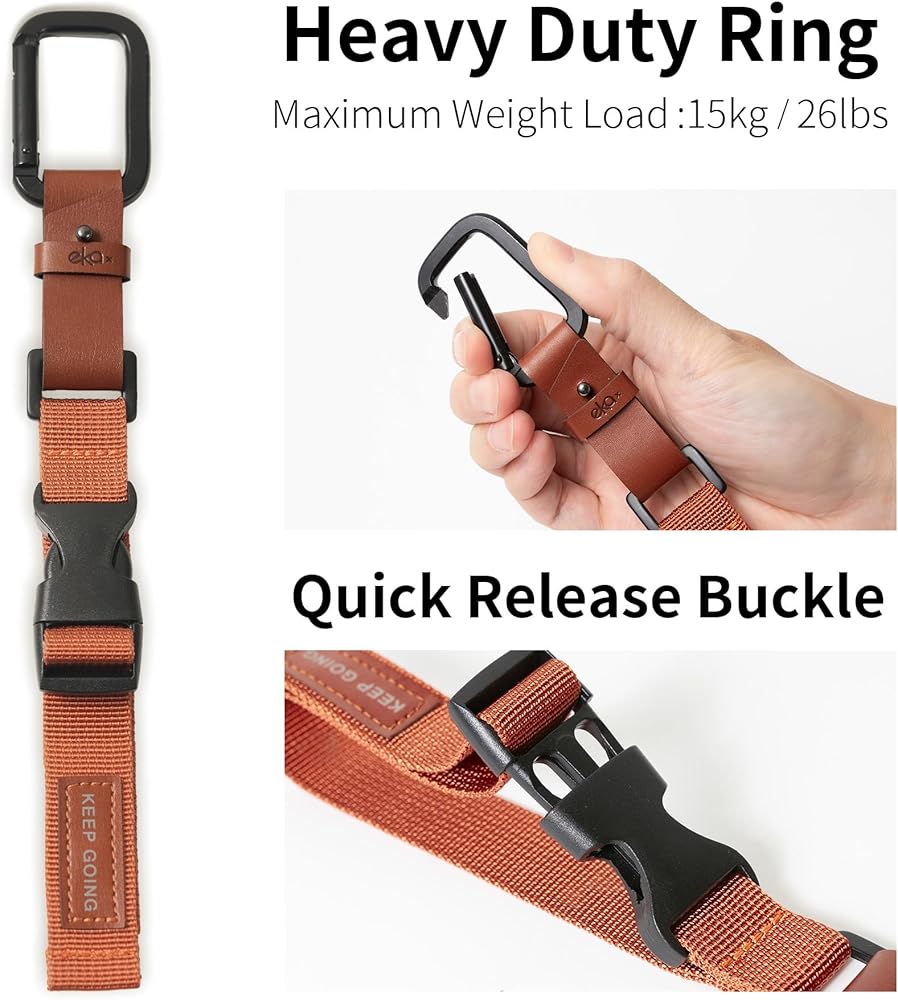 استخدم بثقة: حلقة مقطع للمعادن الشاقة مع حزام قابل للتعديل مصنوع من خيوط البوليستر ذات الجودة العالية والجلد النباتي المتميز. إغلاق مشبك الشركة يضمن الأمن.