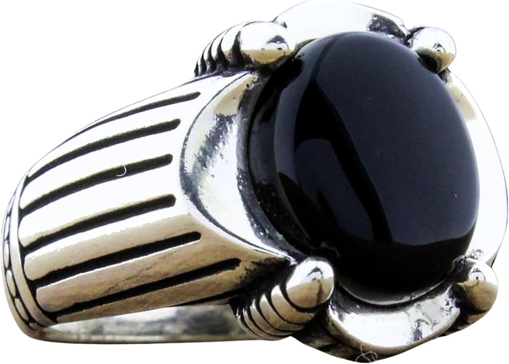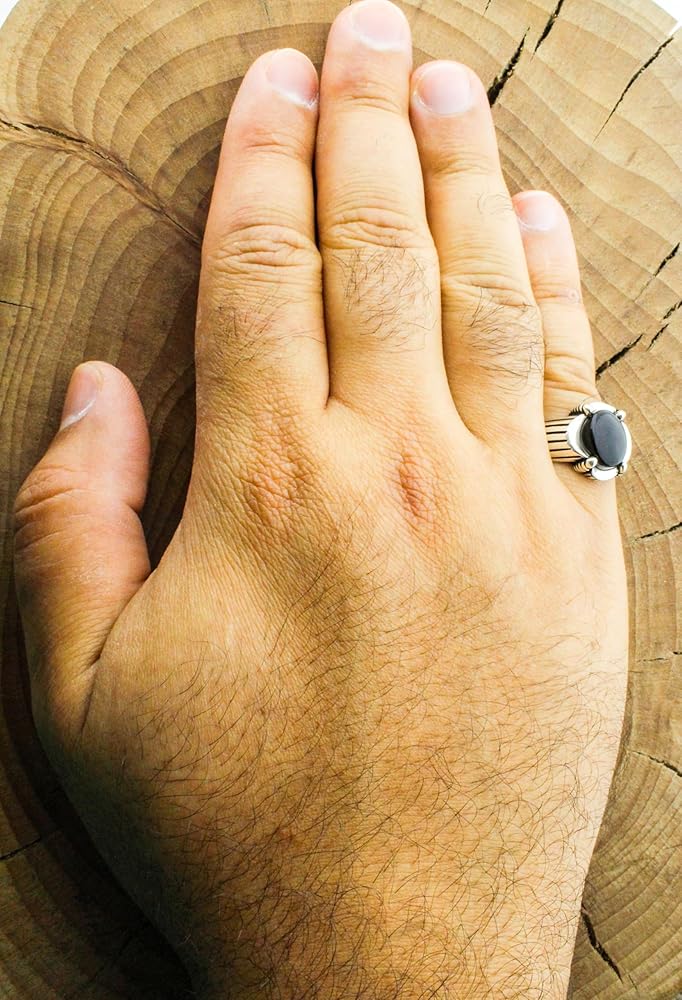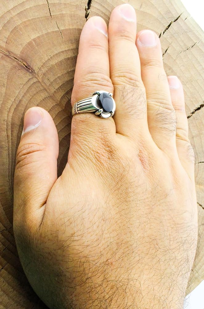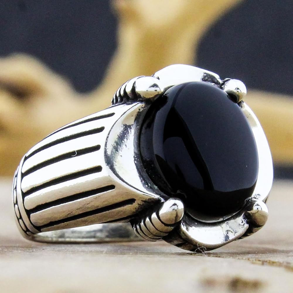 ELEGANT DESIGN: Features a sophisticated black onyx stone centerpiece set in a modern, masculine setting with textured details