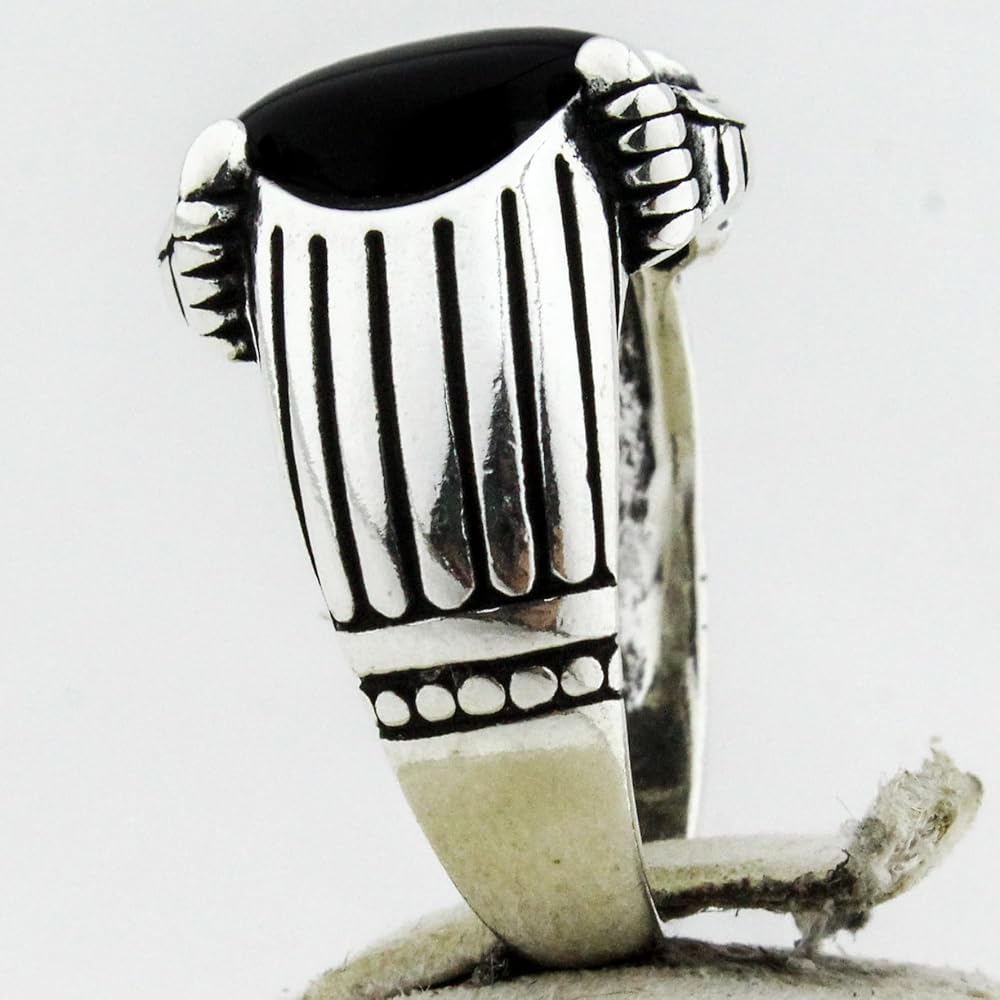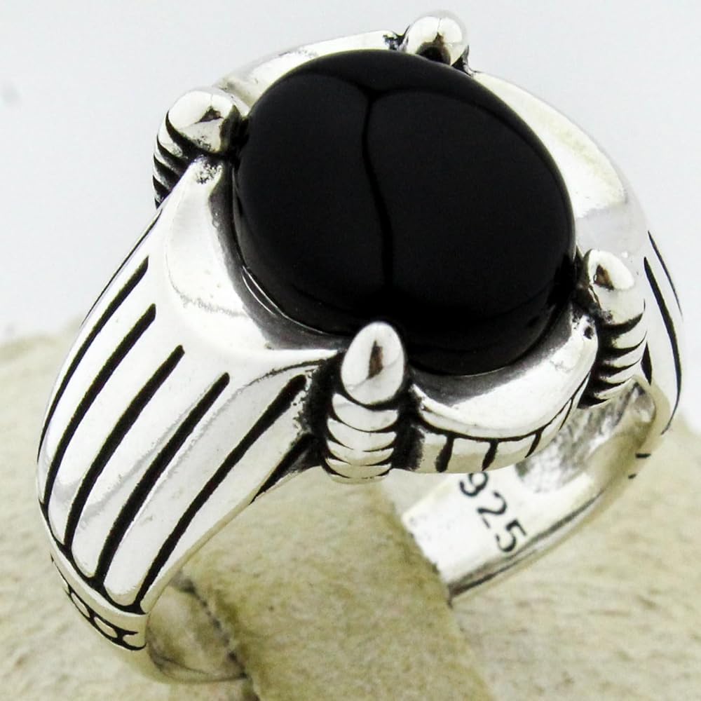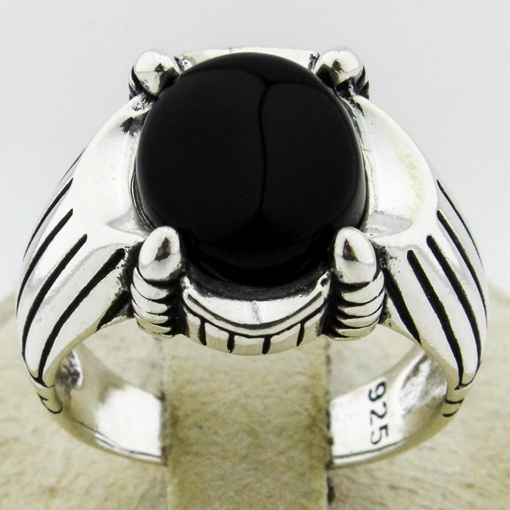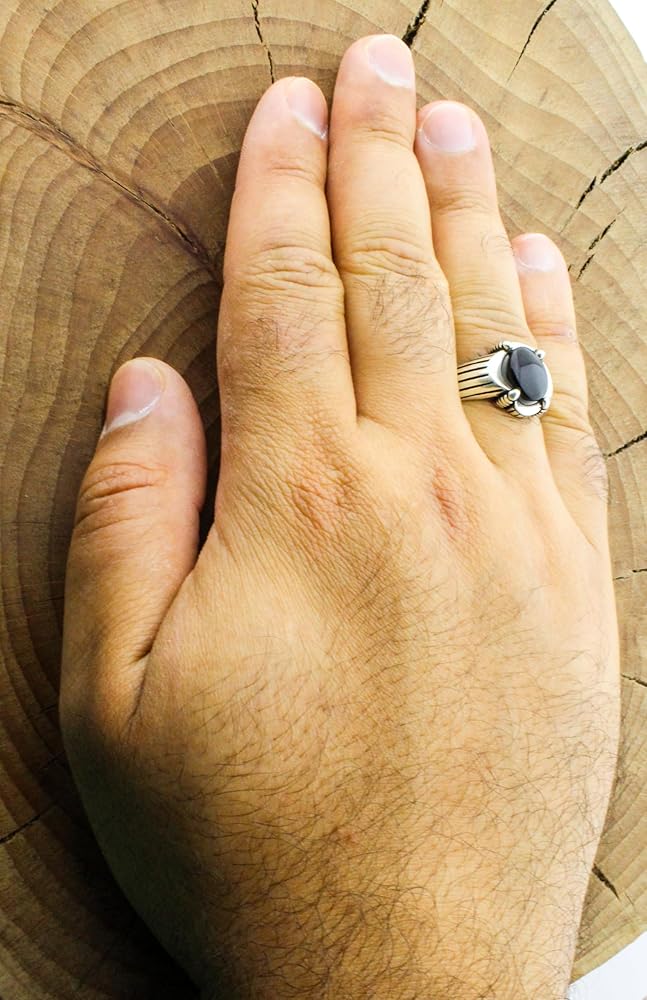 ELEGANT DESIGN: Features a sophisticated black onyx stone centerpiece set in a modern, masculine setting with textured details