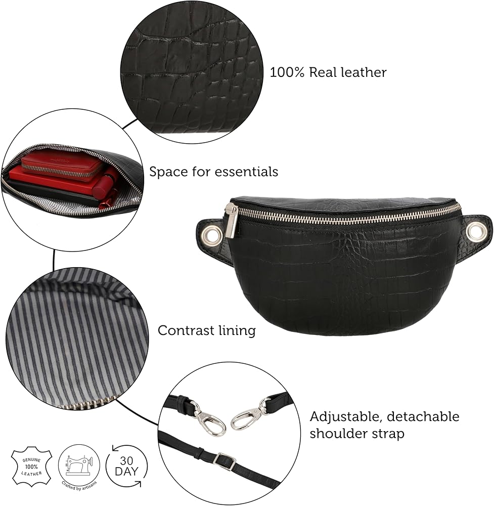 ✅ متين وأنيق: مصنوع من جلد البقر التمساح عالي الجودة ، هذه حزمة الخصر خفيفة الوزن ولكنها متينة ، وتوفر الجمال والوظائف طويلة الأمد مع لمسة جريئة.