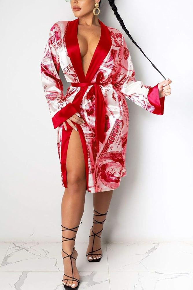• Pattern: Dollars money printed, kimono silky short robe for women, so sexy