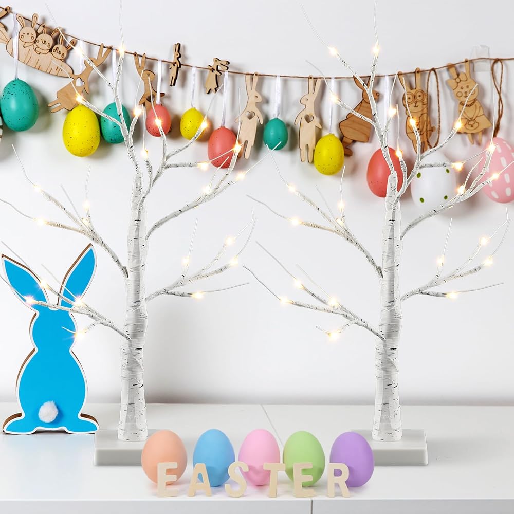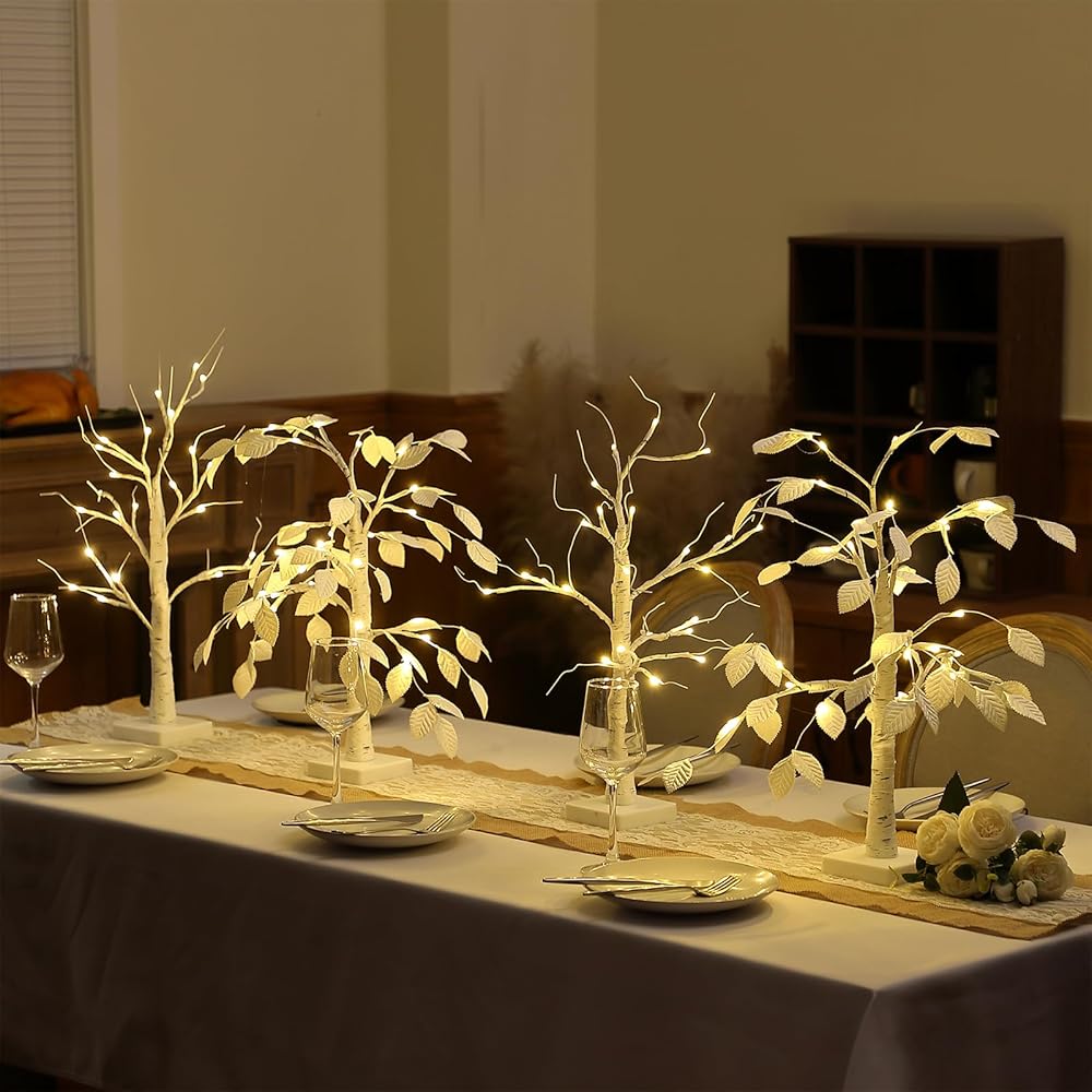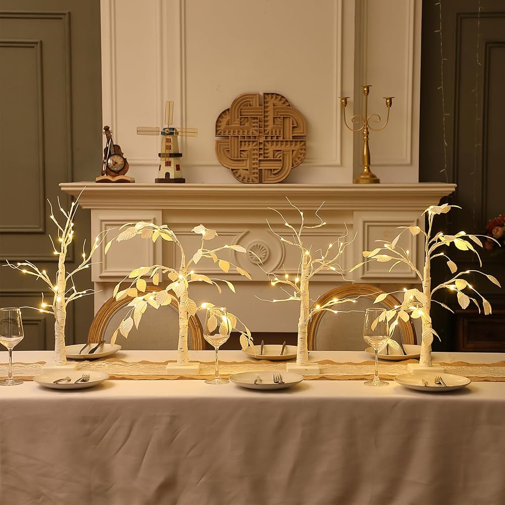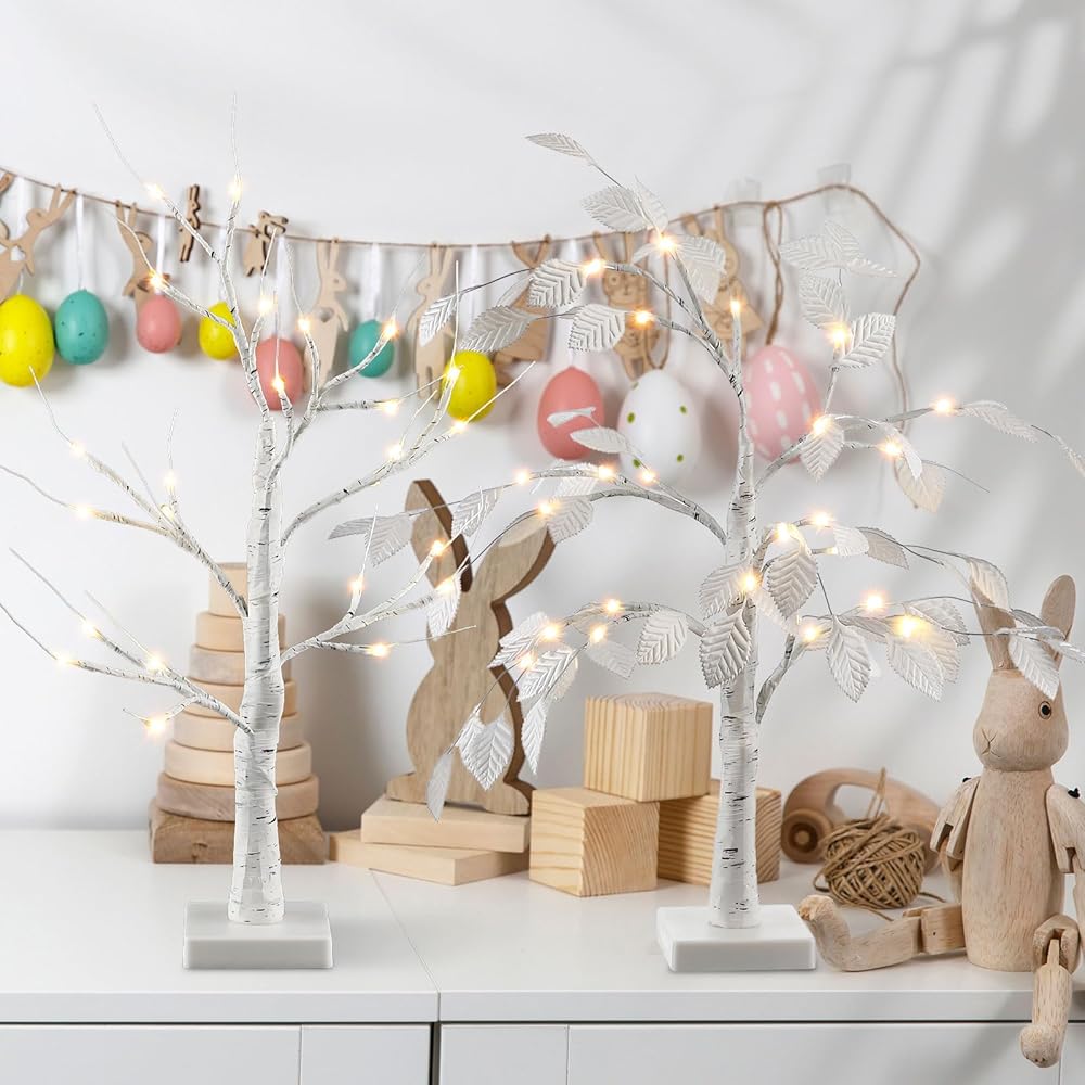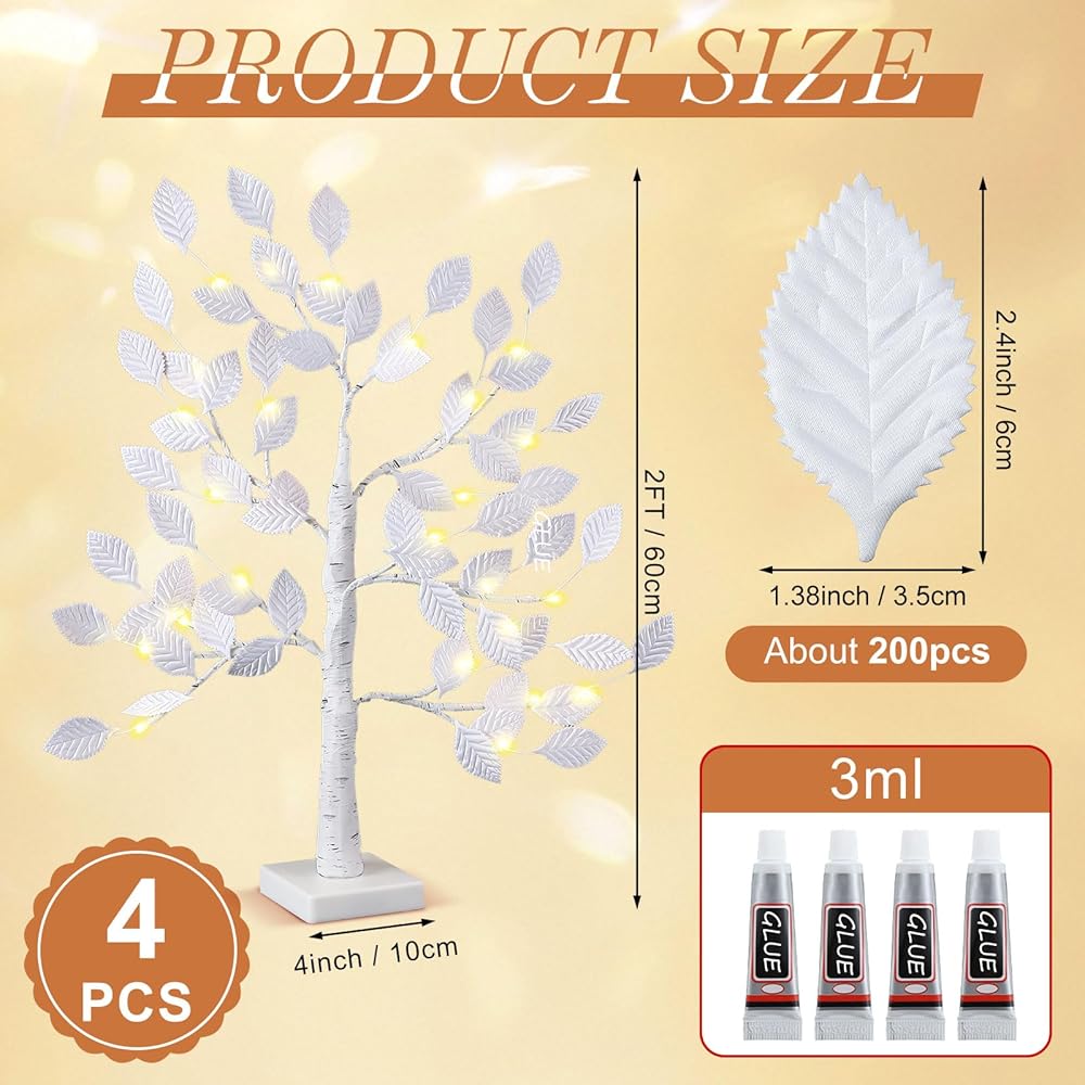 • Generous Package: each order contains 4 pcs birch tree lights for Easter decor, about 200 leaves, and 4 glues, each tree comes with a charging cable and 24 warm white LED lights; All these accessories allow you to create an impressive DIY lighted birch tree effortlessly