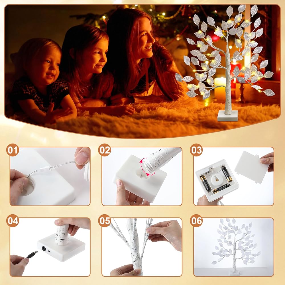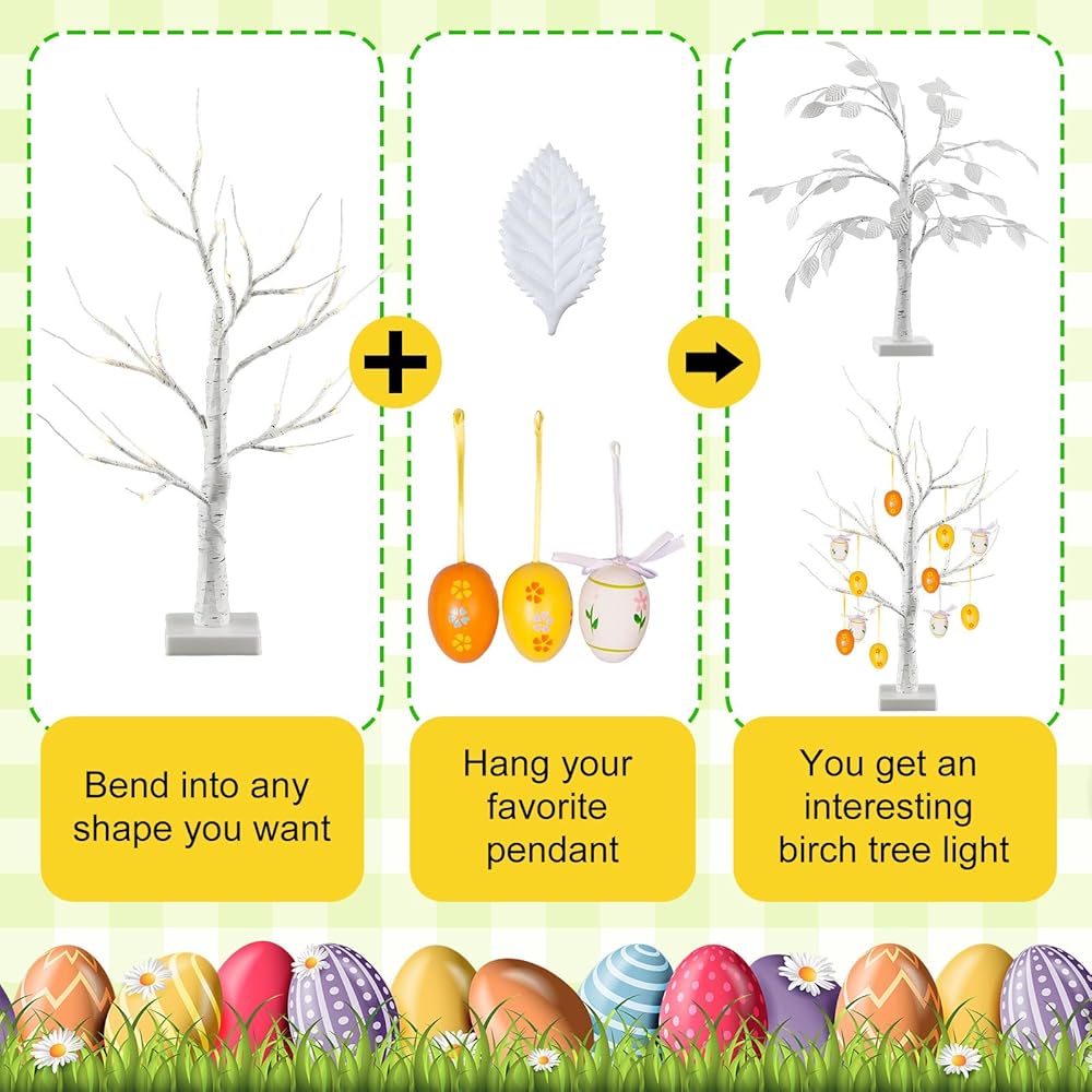 We offer two options, you can choose one according to your needs and preferences. Option one: birch trees with lights come with leaves and glue, which can be used for DIY design. You can use our leaves to design your ideal tree light; Option 2: If you don't want to stick the leaves by yourself, you can also hang your favorite accessories on the tree, such as Easter egg decorations.