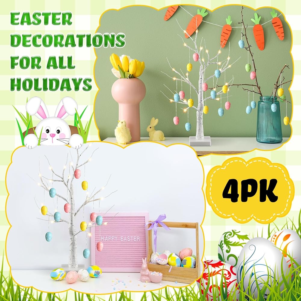 4 حزمة ديكورات عيد الفصح ، شجرة البتولا 2 قدم مع مصابيح LED DIY أبيض دافئ أسفل شجرة عيد الفصح مع الأوراق لأوراق مائدة داخلي رف ديكور الزفاف (أبيض)