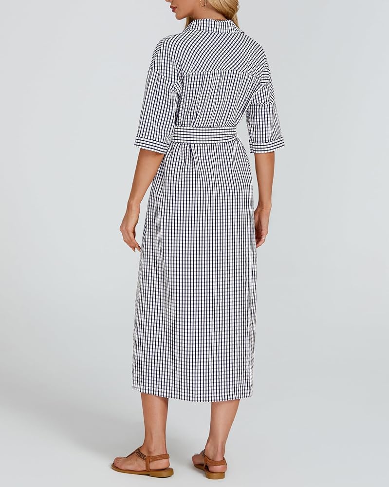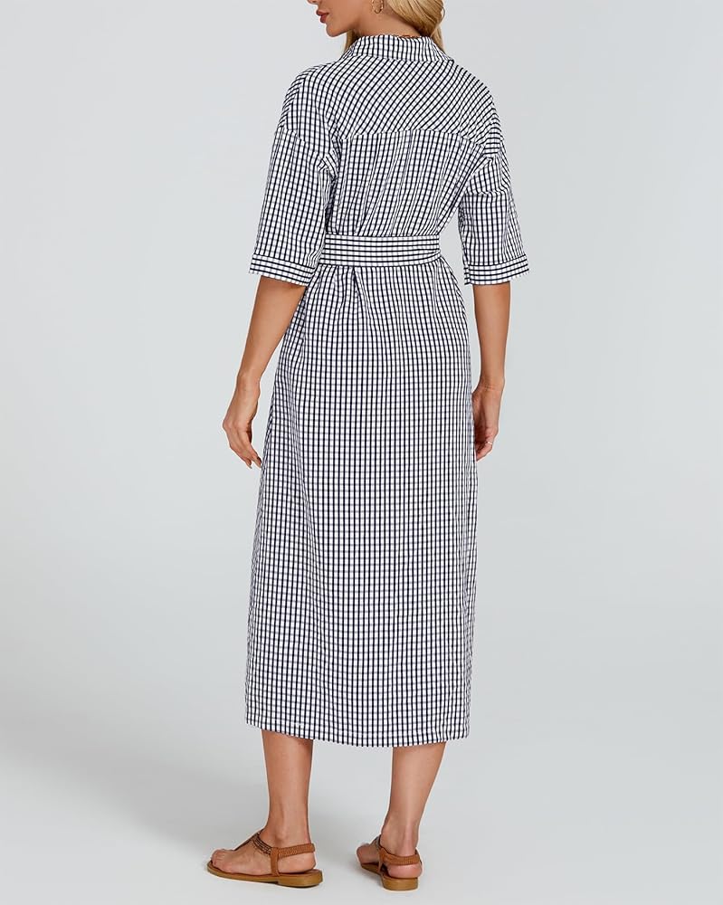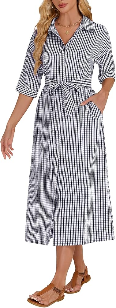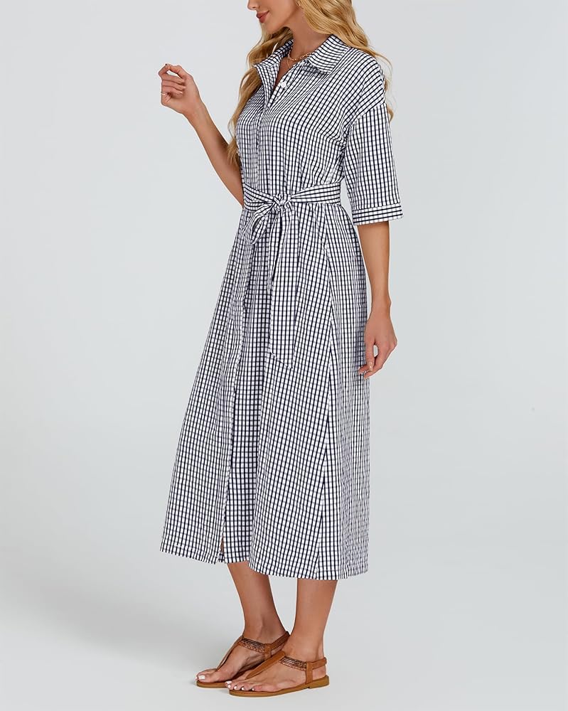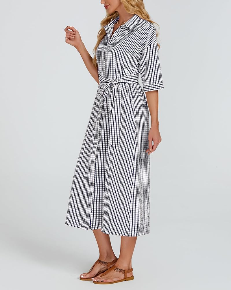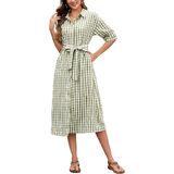 【ميزات】 زر أسفل فستان من رقاقة من رقاقة منقوشة الفستان مع نصف الأكمام وخط العنق المنتشرة ، حزام الخصر الذاتي القابل للإزالة ، جيوب جانبية ، من منقوش باللون الصلب ، وخفيفة الوزن وسهلة التجول ، والحماية متعددة الاستخدامات وشمس ، في الربيع والصيف والخريف