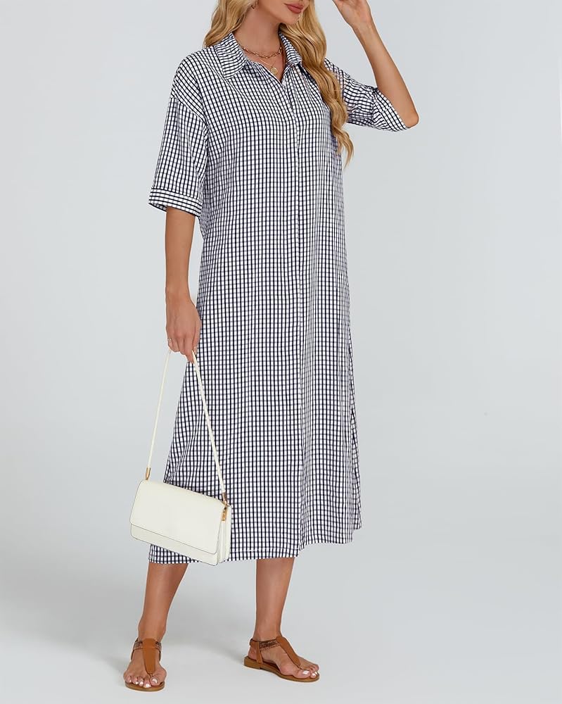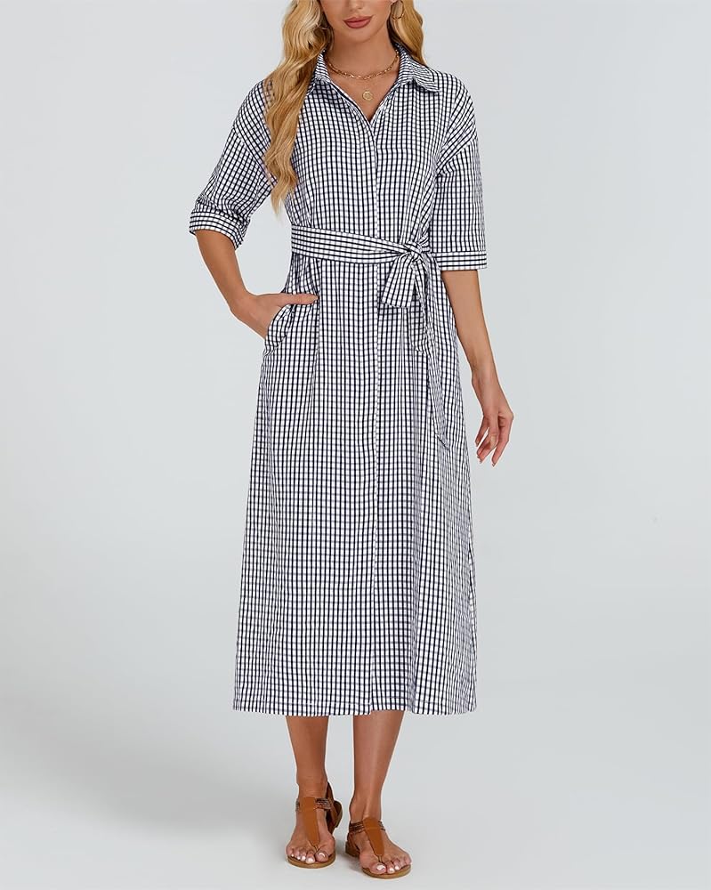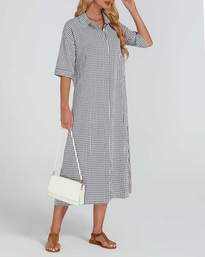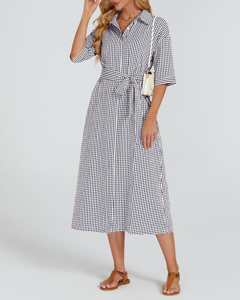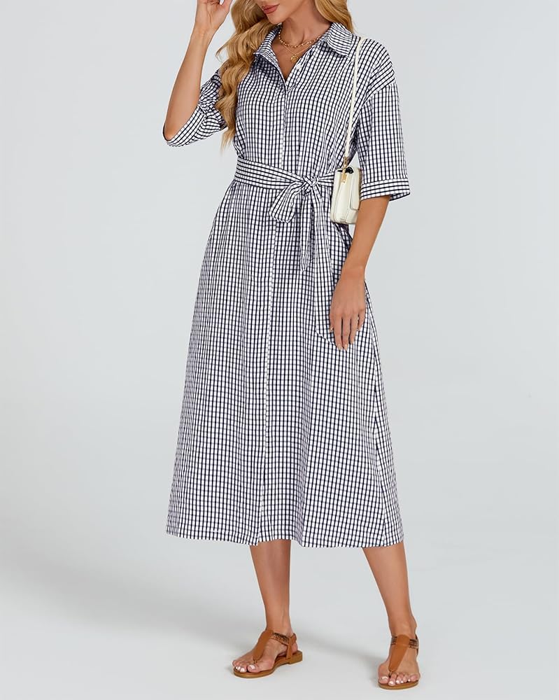 【ميزات】 زر أسفل فستان من رقاقة من رقاقة منقوشة الفستان مع نصف الأكمام وخط العنق المنتشرة ، حزام الخصر الذاتي القابل للإزالة ، جيوب جانبية ، من منقوش باللون الصلب ، وخفيفة الوزن وسهلة التجول ، والحماية متعددة الاستخدامات وشمس ، في الربيع والصيف والخريف