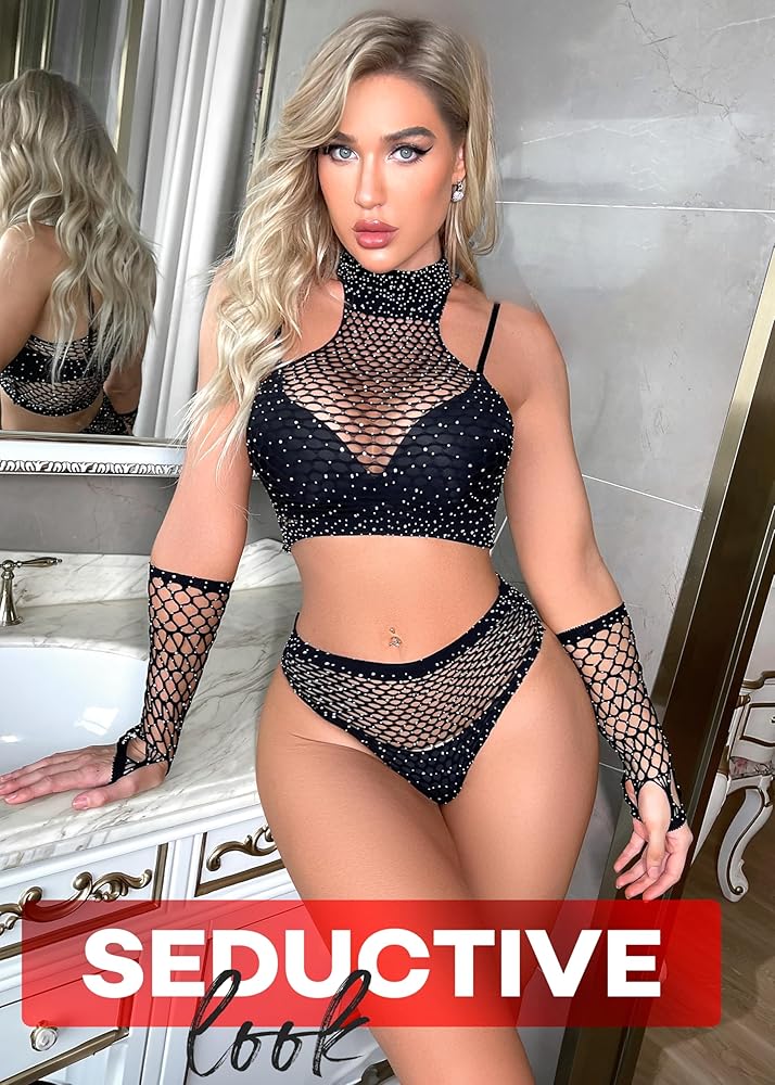 • Women Women Women Women: هذا الزي الشبكي الجريء المكون من قطعتين ، يتكون من أعلى وأسفل ، يجمع بين الأناقة والجاذبية ، ويوفر ملاءمة أنيقة مع مواد قابلة للتنفس. مثالي لإضافة الثقة والسحر إلى خزانة ملابسك.