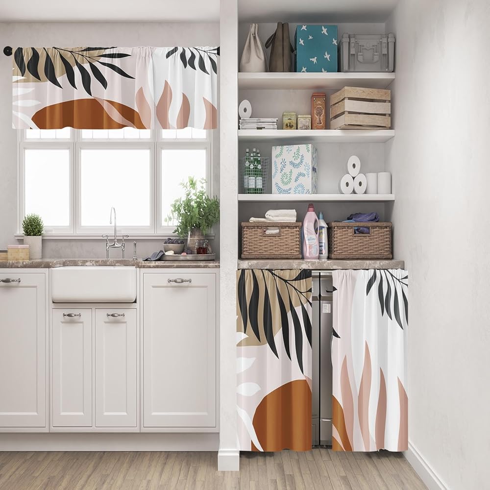 مواد عالية الجودة: تتكون ستائر المطبخ ومجموعة المطبخ من البوليستر بنسبة 100 ٪. المادة ناعمة لللمس ولا تجعد بسهولة. آمن وغير ضار.