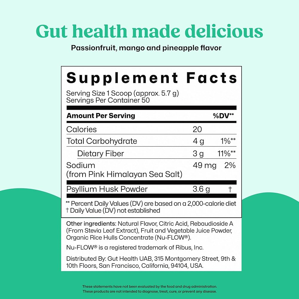 مسحوق قشرة القشرة السسيليوم مع ستيفيا (ثمار استوائية) - تطهير القولون للتغميس وصحة الأمعاء - مشروب مسحوق الألياف القولون - ملحق مسحوق الألياف النباتية ستيفيا ، 50 حصصًا