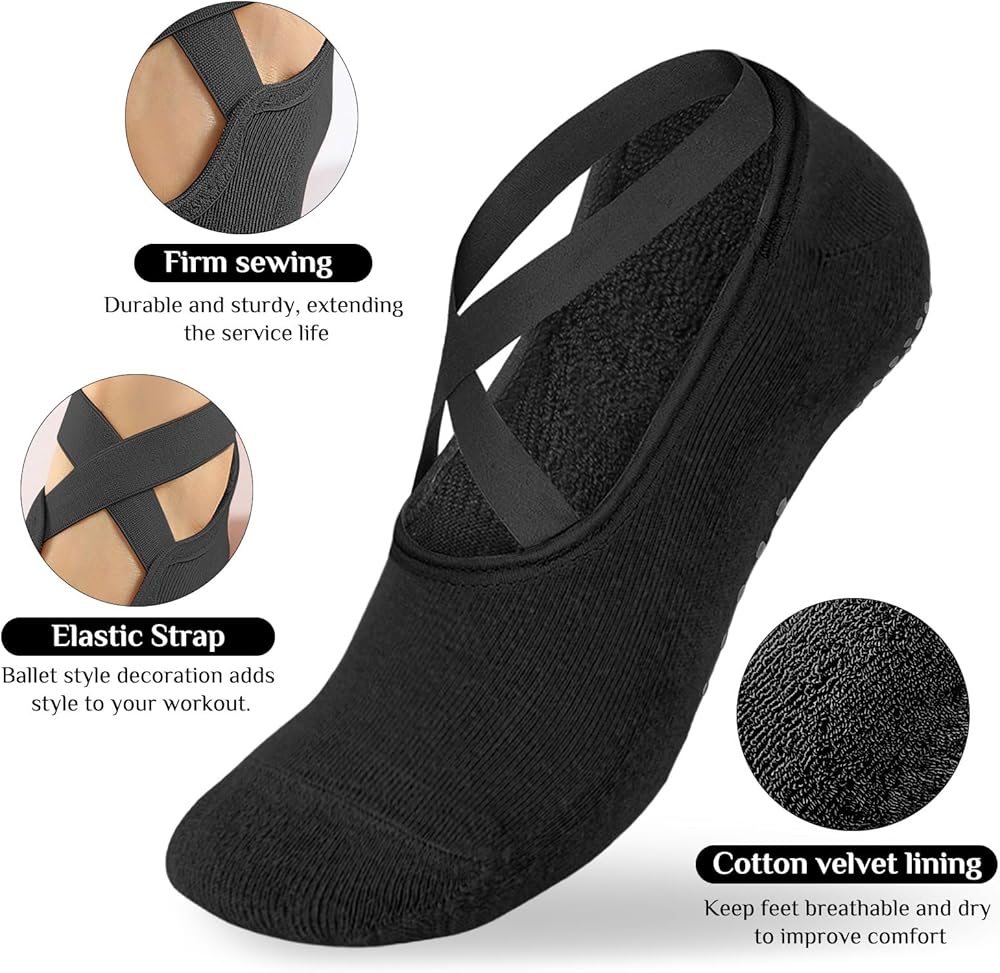 • 【NON-SLIP GRIP DESIGN】Featured by sticky dots on the bottom of the non-slip yoga socks, our anti-skid socks offer better grip on hardwood floors, tile floors, gym floors, or pilates equipment for improved stability & balance so that you can stay safe, avoid injuries and have better control of your body movements. Grips are made of soft and flexible silicone; they will not crack no matter how much you pull and guarantees a firm grip
