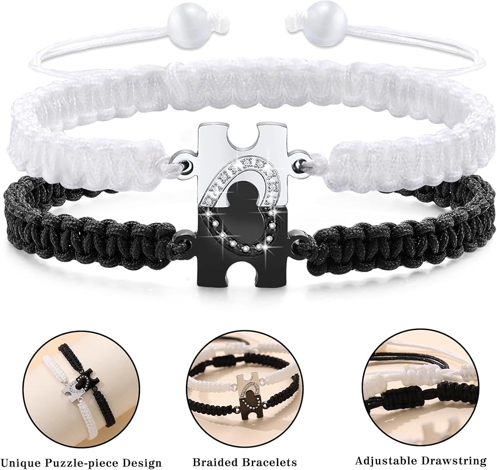 • أفضل صديقات صديق: مطابقة الأساور للأزواج المصنوع من خيوط قطنية متينة وسحر قلب اللغز المعدني ، مريح للارتداء اليومي. مثالية كهدايا علاقة طويلة المدى
