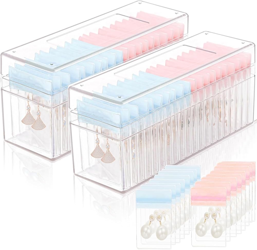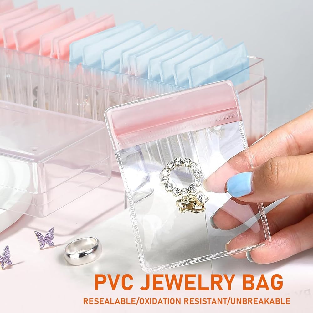 2. 50 منظم حامل حرك ثنائي اللون آمن : يشمل :25 PINK + 25 أكياسًا زرقاء مضادة للزرق (3.2 "x2.5") في PVC السميكة المقاومة للدموع-من أجل منظمي المجوهرات travel التي تمنع الأكسدة. تتيح لك الأكياس الشفافة اكتشاف العناصر بسرعة مع الحفاظ على الحلقات أو الأزرار أو السحر الخالي من tarnish ، سواء تم تخزينها في حقيبتك أو الغرور.