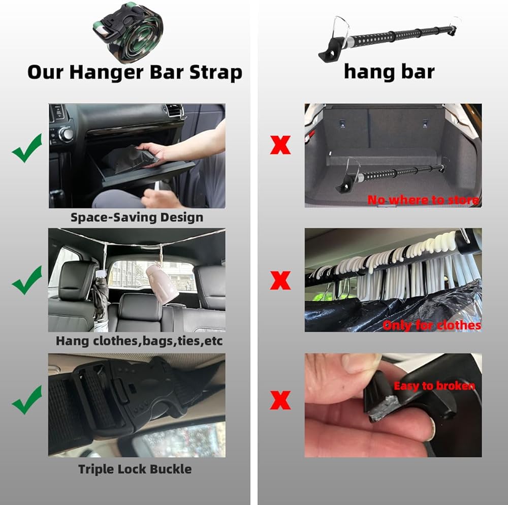 Universal Fit:LZKZPY car clothes hanger belt fits sedans,vans, SUVs,Trucks, a good way for keeping your clothes neat and wrinkle-free.