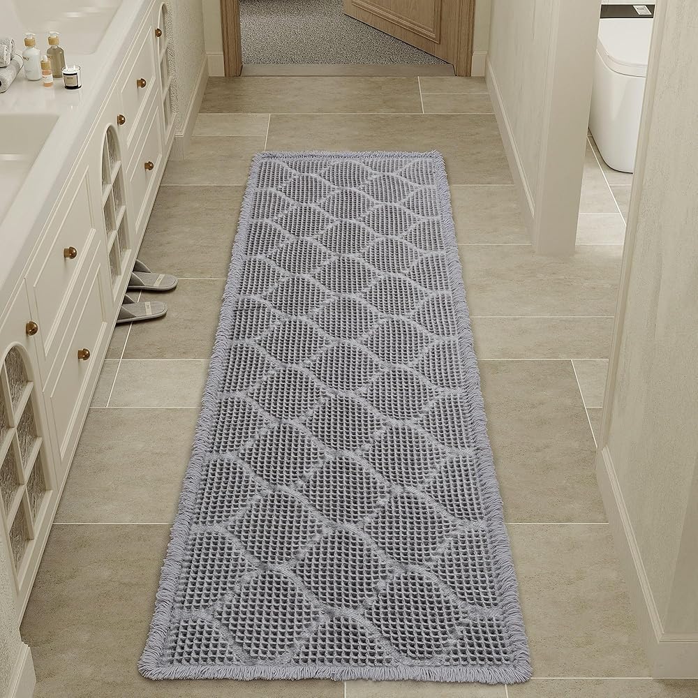 • سجادة حمام فائقة الامتصاص: تتميز بملمس وافل مزدوج الطبقات ، تمتص حصيرة الحمام الناعمة هذه بسرعة المياه السفلية ، مما يجعل حمامك أو مطبخك جافًا ونظيفًا. يعزز النسيج عالي الكثافة التنفس تدفق الهواء ، ويساعد في تجفيف أسرع ويمتص الماء.