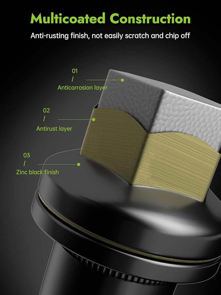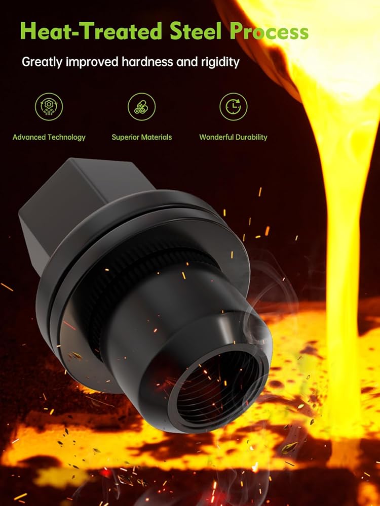 مكافحة ومتينة: إن المكسرات الثلاثية للكروم ، والعملية الفولاذية المزورة من البرودة والمعالجة بالحرارة هي مضادة للتشكيل ومضاد للتشويش ، مما يطيل وقت الاستخدام بشكل كبير. تأكد من الملاءمة الضيقة بين خيط الجوز الذي تم معالجته الدقة ومربحة لضمان السلامة