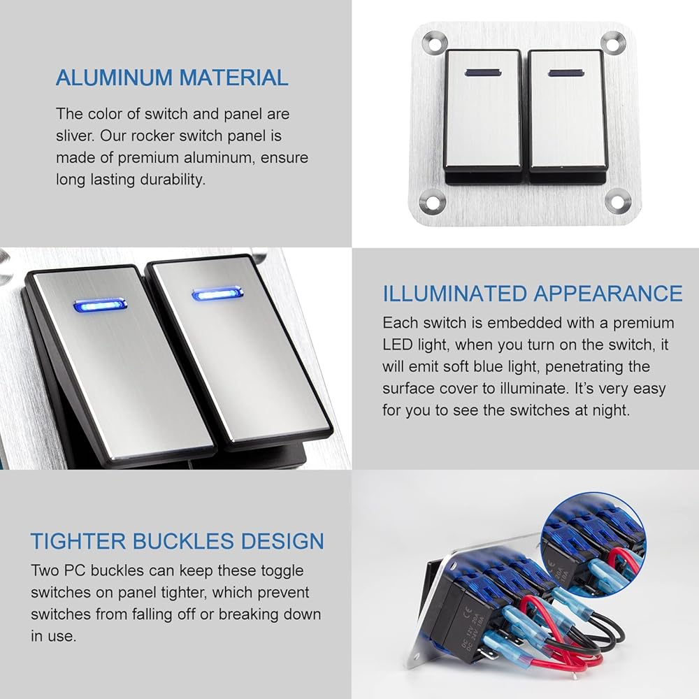 [سهل التثبيت والاستخدام]: 3 دبوس مفتاح موسيقى الروك مع تصميم واحد للقطب المفرد ، التثبيت البسيط ، قم بتشغيل أو إيقاف تشغيل الضوء بحرية. يمكن تطبيق لوحة مفتاح Gang 4 على جهد التشغيل DC12V/24V.
