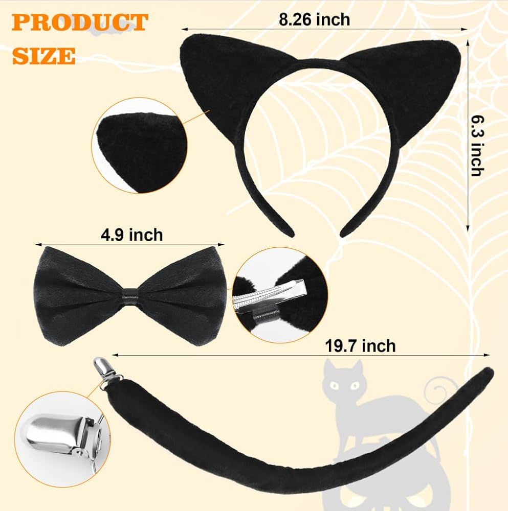 قم بتناسب الحجام: عصابة الرأس: 8.26 بوصة ؛ القوس: 4.8 بوصة ؛ الذيل: 19.7 بوصة. هذه بدلة أزياء النمر لها أذنين سميكة وربطة عنق القوس وذيل مقطع لتصميم صغير ومحمول. يحتوي الذيل على سلك لإعداد شكل الذيل في Will.enrich زي الهالوين الخاص بك