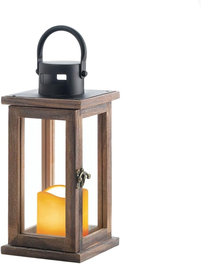 الفوانيس الشمعة الخشبية Zingz & Thinkz ، ديكور المنزل الزخرفي ، طوله 10.75 بوصة ، مع LED