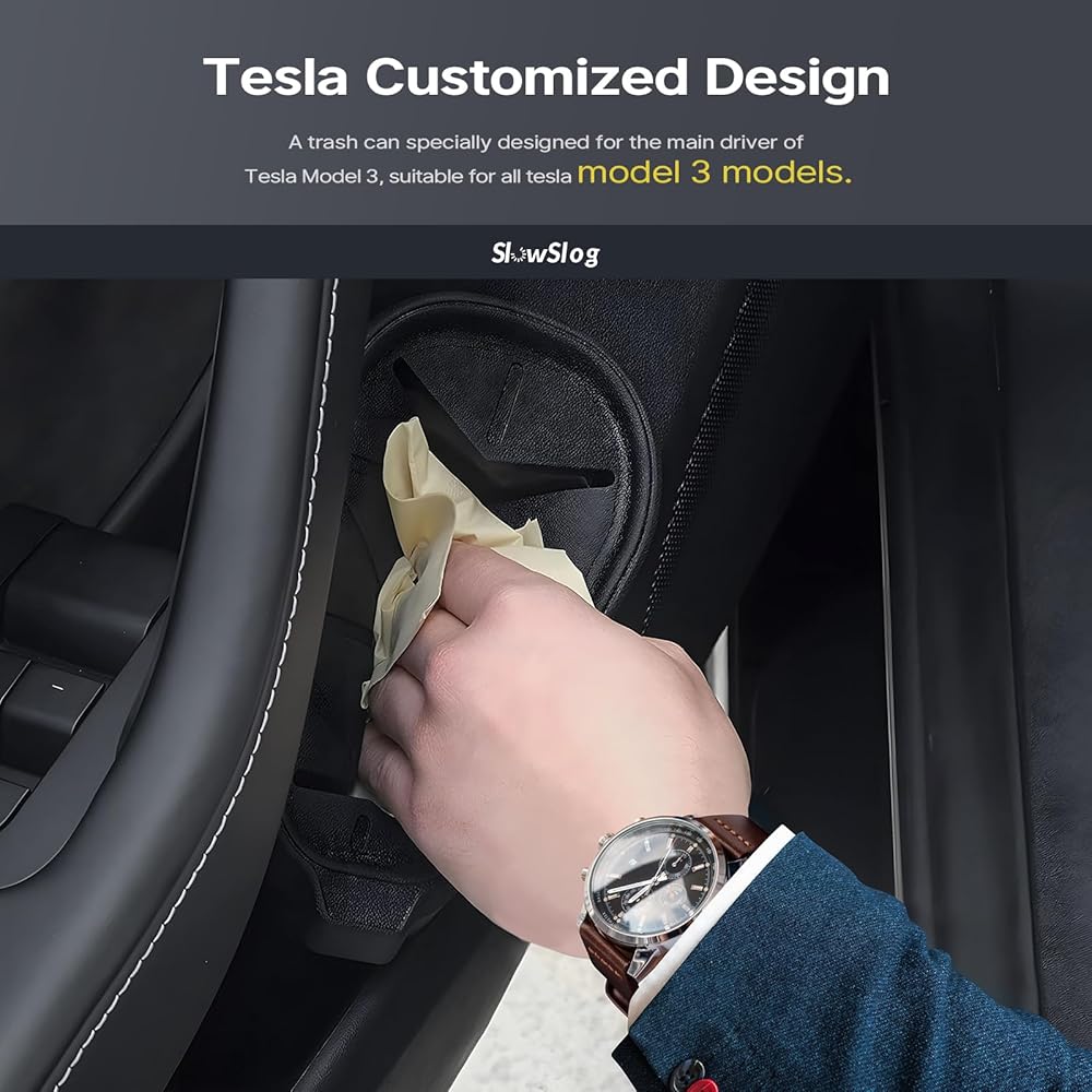 【Tesla Customized Design】A trash can specially designed for the main driver of Tesla Model 3, suitable for all tesla model 3 models. The profile of the tesla model 3 trash can fits well into the left door, keeping it from shaking when the car is moving.