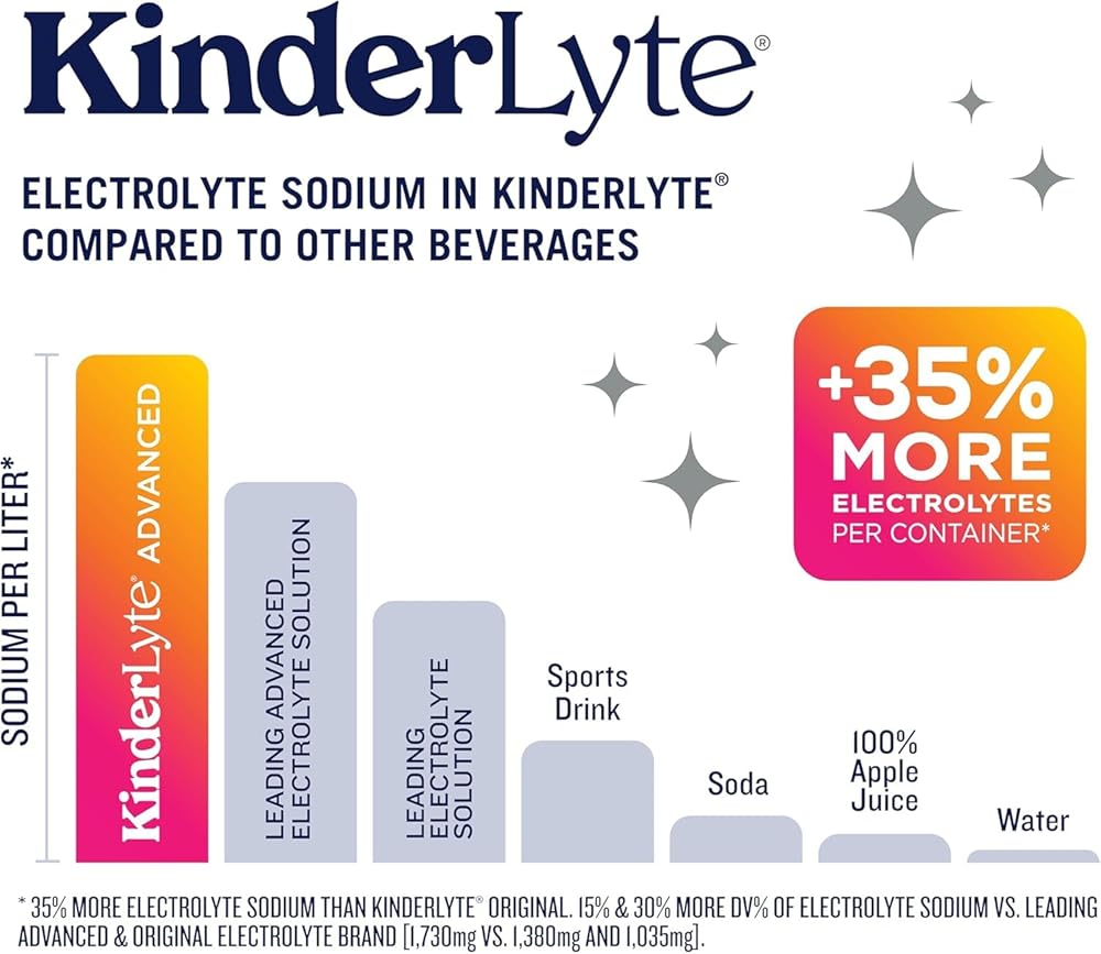 Medical grade hydration for the whole family! Kinderlyte works fast like an IV without the use of artificial sweeteners, colors, or flavors to deliver rapid hydration to people of any age. Whether for stomach virus, infant diarrhea, toddler vomiting, heat exhaustion, sports, recovery, or travel, Kinderlyte is the only natural solution for true electrolyte replacement. Our products never use fruit juice (which slows rehydration) or artificial ingredients like Sucralose, Acesulfame Potassium, Yellow 6, Blue 1 or Red 40. With kid approved flavors and superior hydration, your family can feel better faster with Kinderlyte!