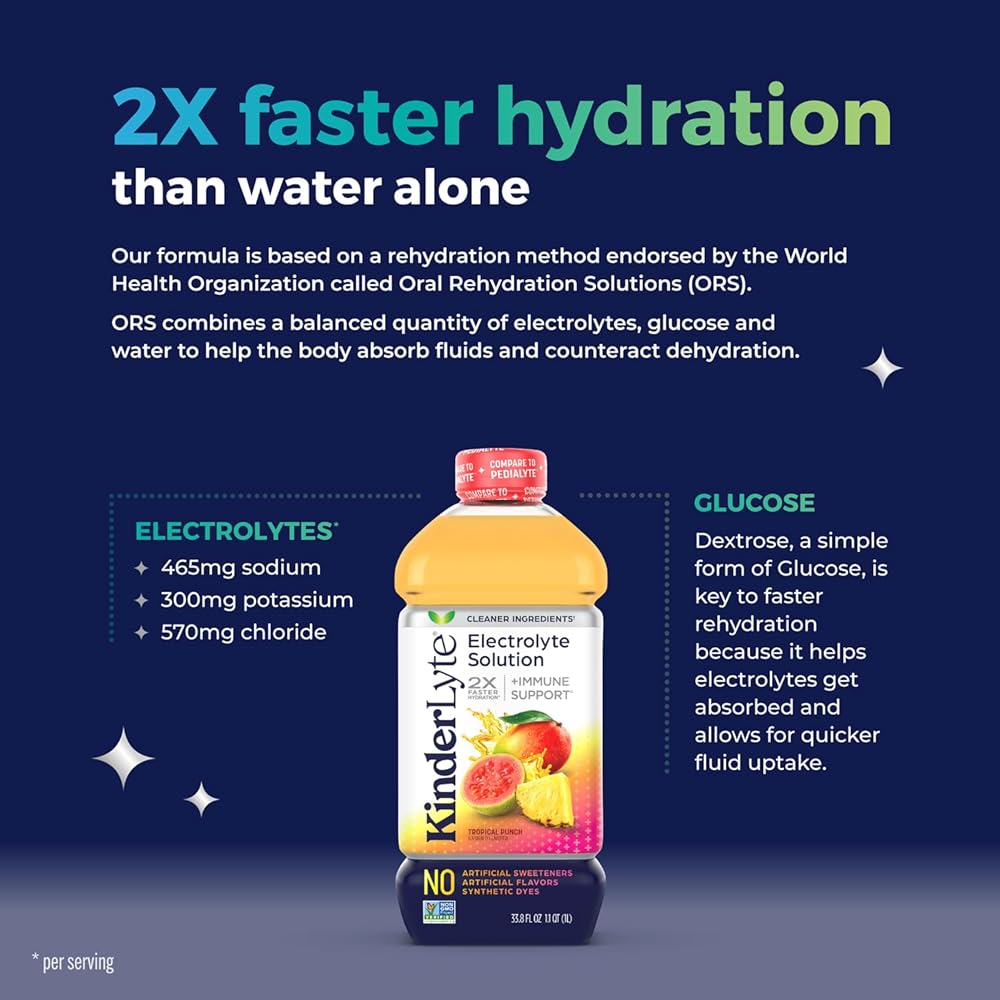 EFFECTIVE, CLEAN HYDRATION - Kinderlyte hydrates 3x faster than water alone without the use of artificial sweeteners, colors, flavors or preservatives. With kid approved flavors and superior hydration, your family can feel better faster with Kinderlyte!