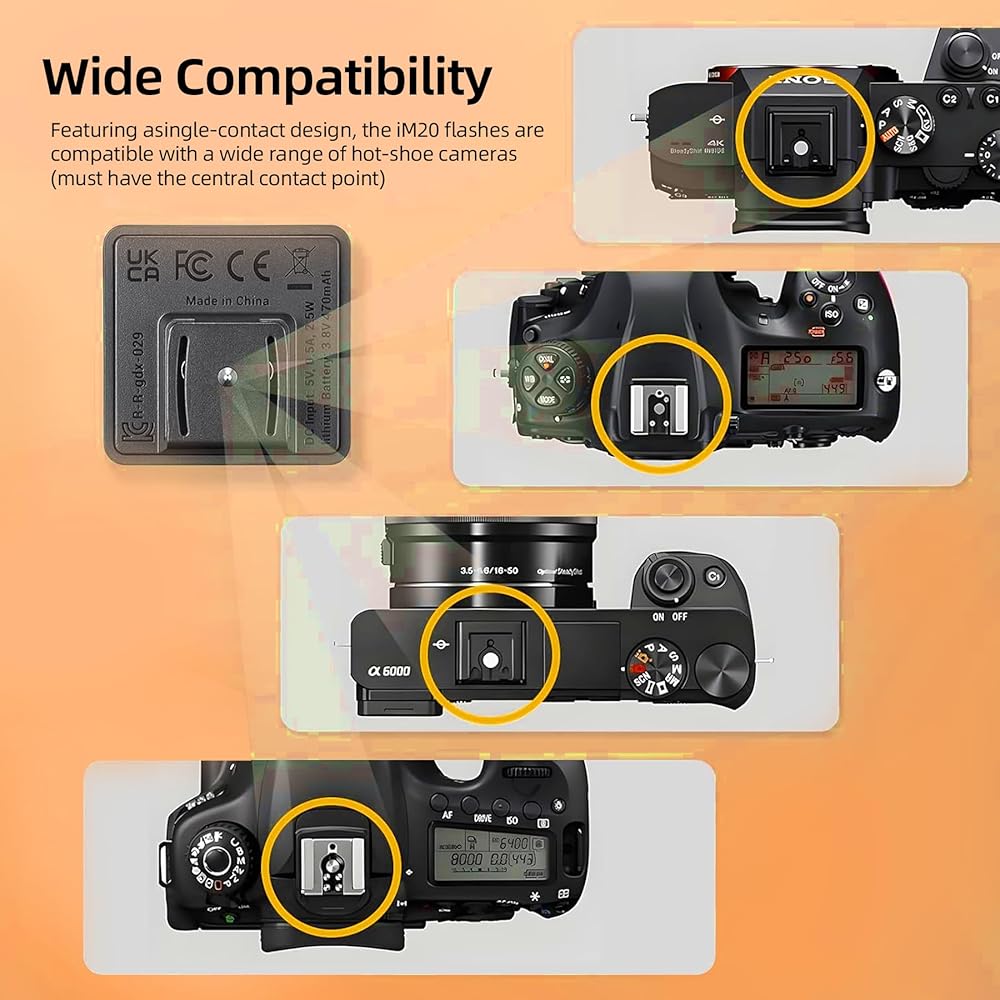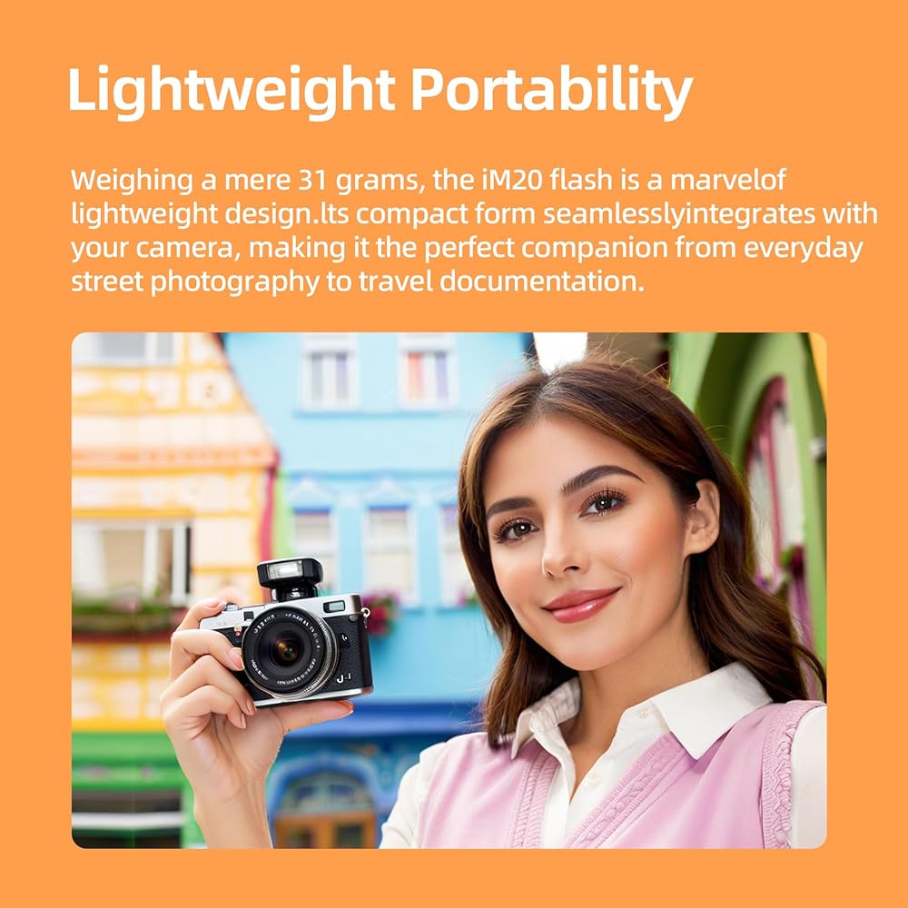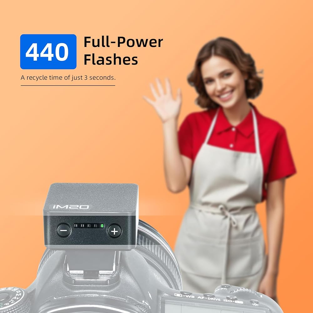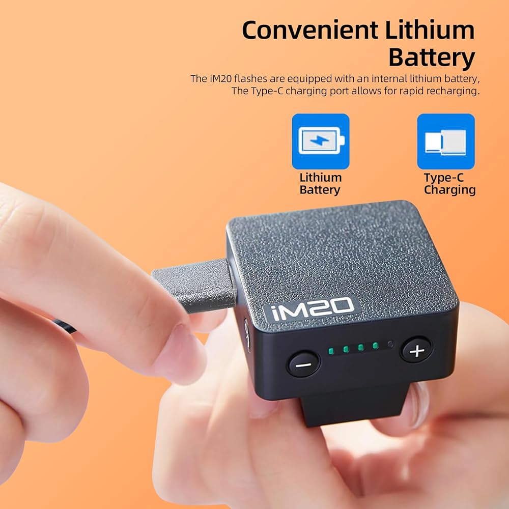 📸 【الدعم الفني】 فلاش IM30 Mini الذي يوفر ما يصل إلى 230 وميضًا على شحنة واحدة. من خلال 7 مستويات طاقة (1/64 ~ 1/1) لتناسب أي مشهد.