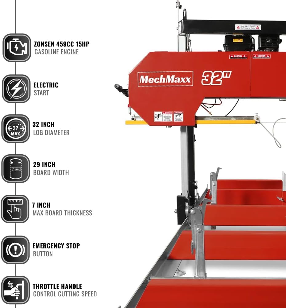 power power】 SM-26 SAWMILL تتبنى الكهرباء البدء الكهربائي DUCAR 420CC 15HP 4HP 4-Stroke محرك البنزين OHV المبرد بالهواء. يمكن إعداده في دقائق وتخزينه مباشرة في المرآب أو ورشة العمل.