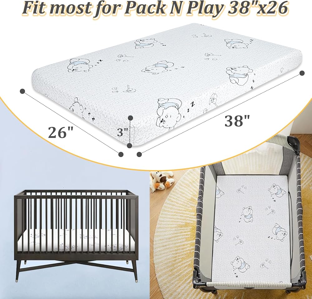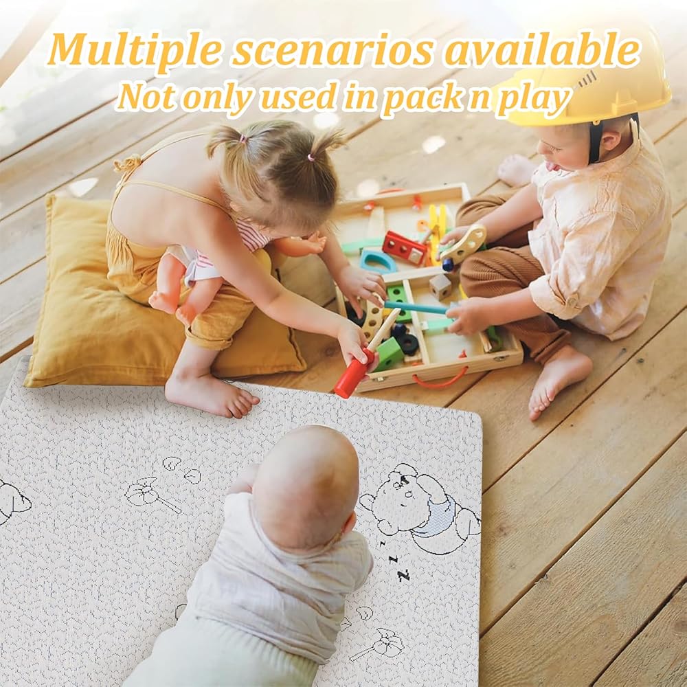تم تصميم حجمها للمسرحيات - الحزمة واللعب 38 × 26 بوصة (غير مصممة للسررة القياسية أو أسرة صغيرة/محمولة). يوفر ملاءمة وآمنة مع الحواف الدائرية ، وتقليل الفجوات وإنشاء مساحة أكثر أمانًا لطفلك الصغير أثناء الاستكشاف.