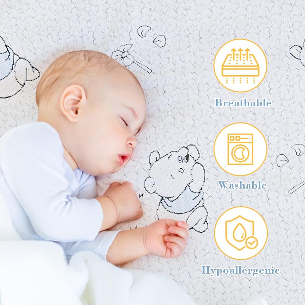 غطاء Jacquard الفائق النقمة - الغطاء الخارجي لمرتبة سرير صغيرة مصنوعة من نسيج قابل للتنفس للحد من الضوضاء ، وهو أمر يسهل فصله عن الماكينة القابلة للغسل بتصميم السوستة. إنها جميلة وجميلة مع أنماط الدب ، رائعة لتزيين الحضانة الخاصة بك.
