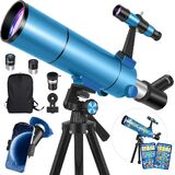 تلسكوب ، تلسكوب للبالغين والأطفال وعلم الفلك المبتدئين ، فتحة 80 مم من التلسكوبات المحمولة المحمولة البصريات متعددة المغلفة مع ترايبود جبل ومحول الهاتف ومرشح القمر