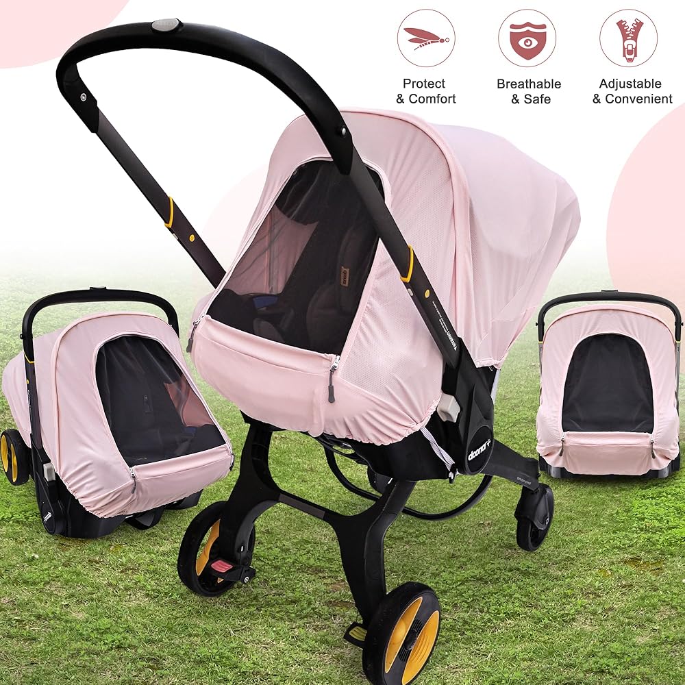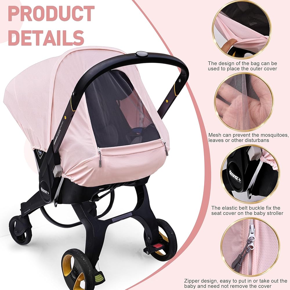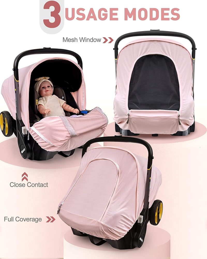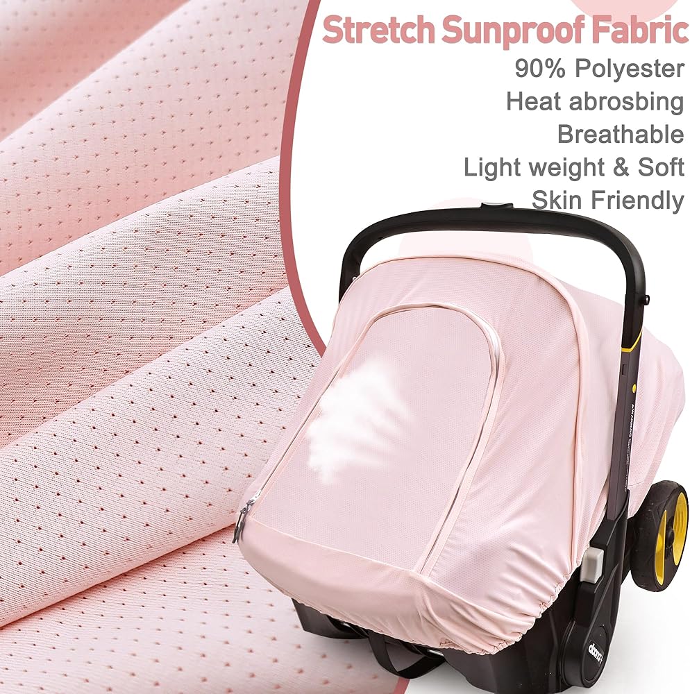 غطاء مقعد سيارة الصيف المتوافق مع مقعد سيارة دوونا وعربة عربة ، ومظلة مقعد السيارة المقاومة للشمس للتنفس للفتيات ، مناسبة لاستخدام الربيع/الصيف/الخريف (الوردي)