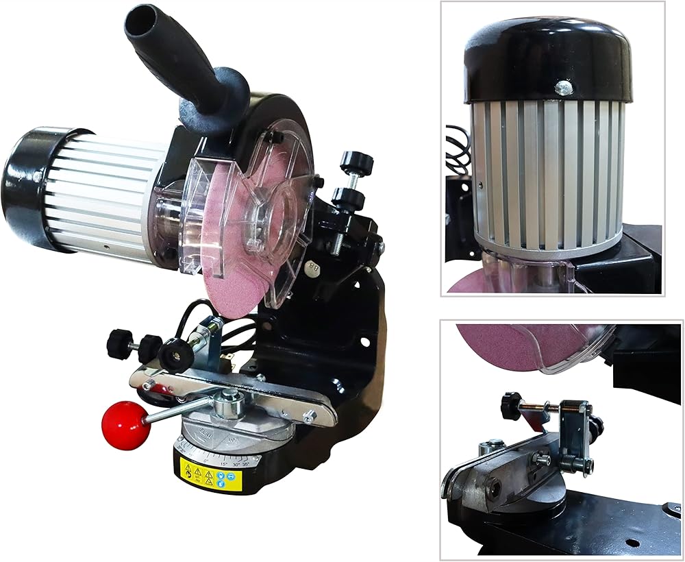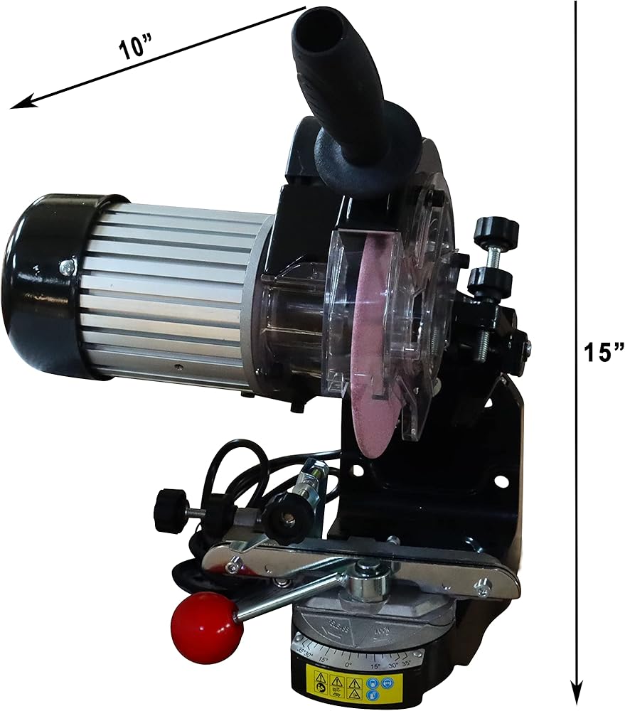 • 【Safety performance】Our chainsaw bench grinder has a transparent protective cover, which can resist the sparks and iron filings produced by grinding to harm to the human body, and because of its transparency, it will not block the line of sight to observe the grinding of the knife edge