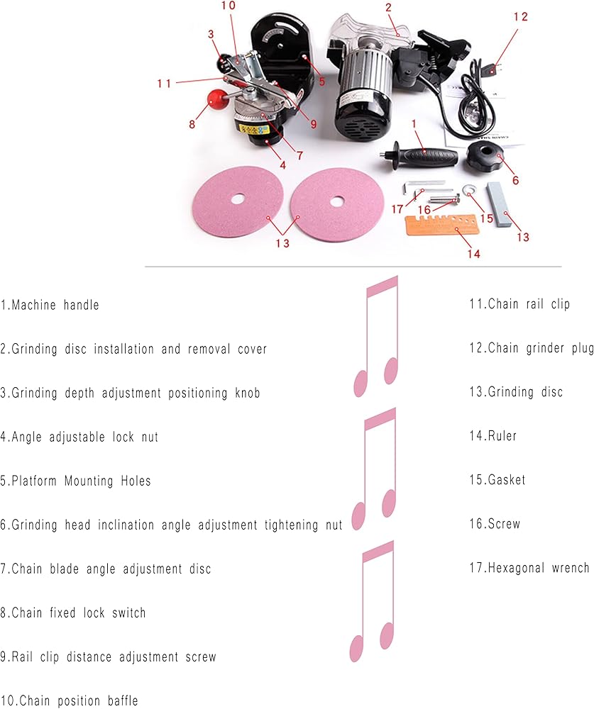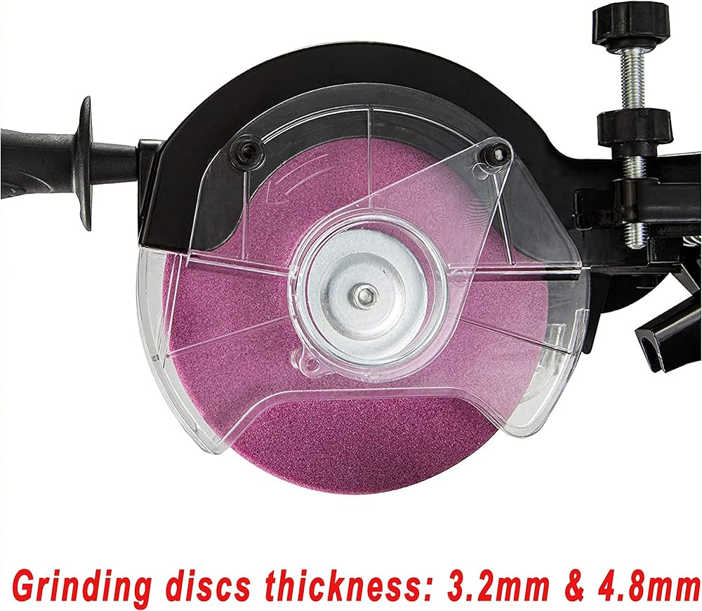 • 【Excellent quality】Chain grinder with complete accessories is a special machine for grinding chainsaw chains. 230W high-power all-copper motor provides strong power. With the characteristics of fast grinding speed and easy operation, it does not need too much time to complete the work of chain grinding. The chainsaw bench blade sharpener has two grinding discs which thickness are 3.2mm and 4.8mm. Therefore, this chainsaw sharpener is suitable for a variety of chains of different specifications