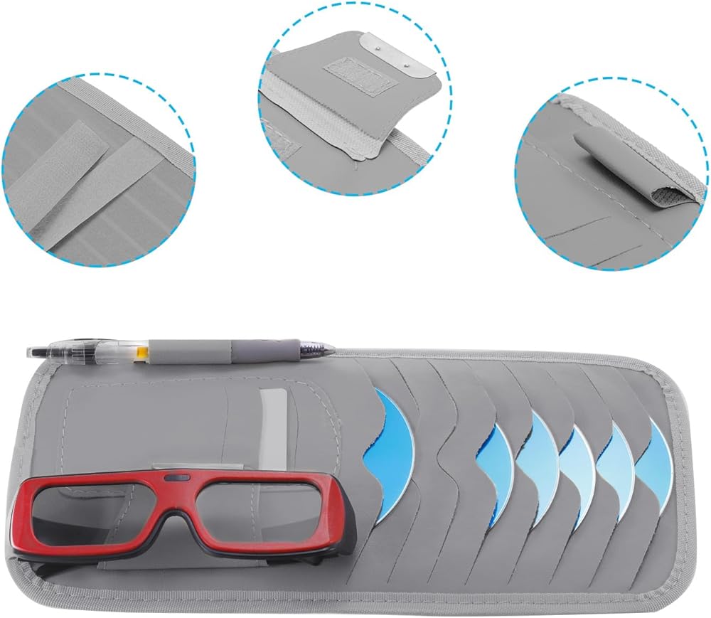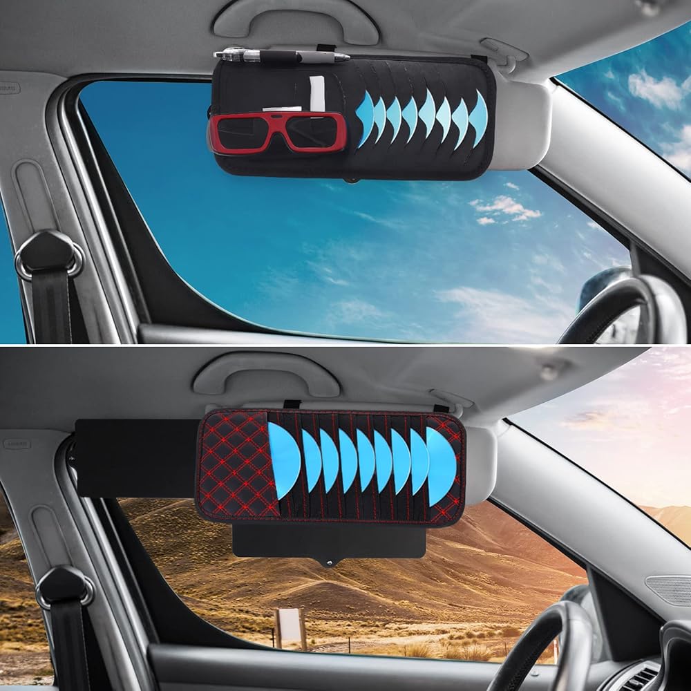 المميزات: مصنوع من جلد البولي يوريثان، ملمس ناعم وليس من السهل تشويهه، ويمكن استخدامه لفترة طويلة. مصمم بحزام ثابت مع شريط لاصق، وهو قابل للتعديل وفقًا للحاجب، مما يسهل تجميع الحامل على الواقي. يوجد 8 جيوب، 3 جيوب للبطاقات، حامل أقلام، مشابك نظارات لتقسيم أنواع مختلفة من الأشياء في نفس الوقت، وهو مناسب لأخذ مساحة ولا يحجب رؤيتك أثناء القيادة.