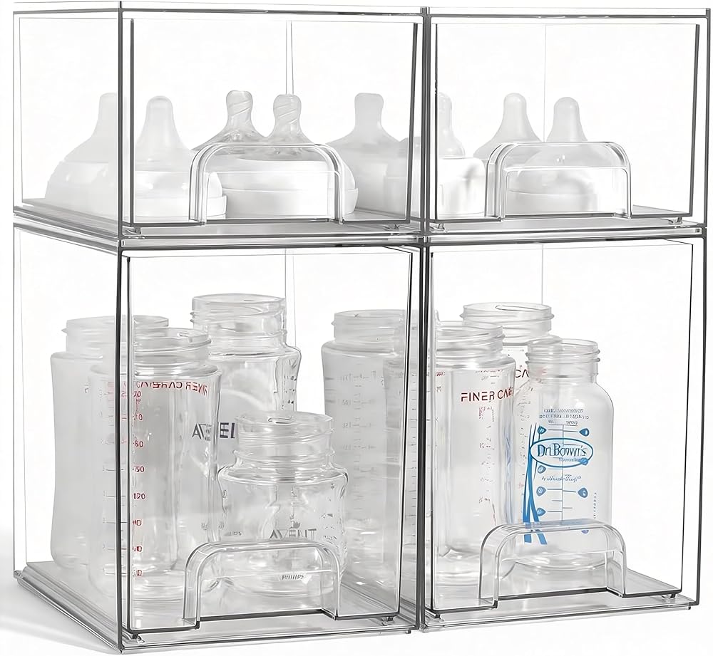 [تصنيف وتخزين] 4 حزمة مفصولة منظم تخزين زجاجة الأطفال القابلة للتكديس تصنيف زجاجات وملحقات لتخزين , التي تحافظ على أساسيات تغذية الأطفال حديثي الولادة مخزنة بدقة , يمكن الوصول إليها بسهولة ويفصل عن الغبار.