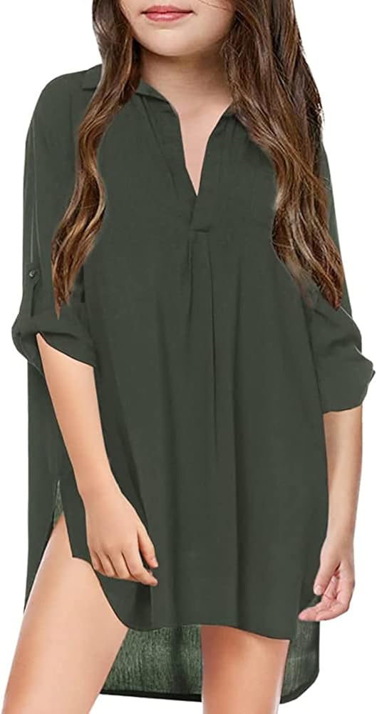 تغطية الفتاة لباس الأطفال قميص ملابس الشيفون شيفون تستر فوق فتاة شيفون قميص بيتش (الجيش الأخضر ، 8-9 سنوات)
