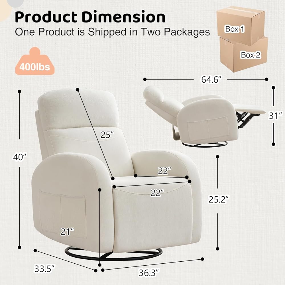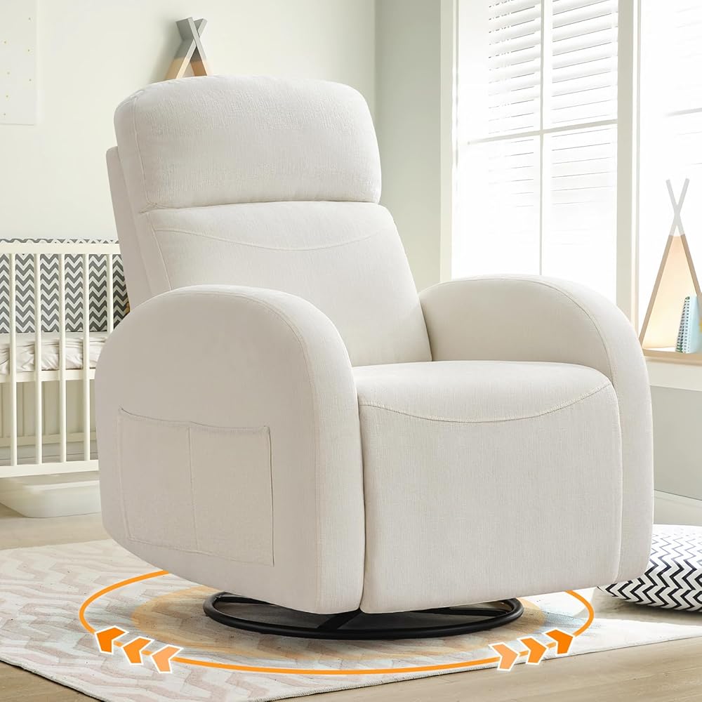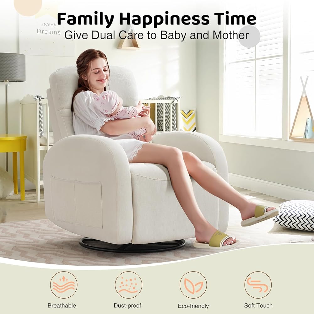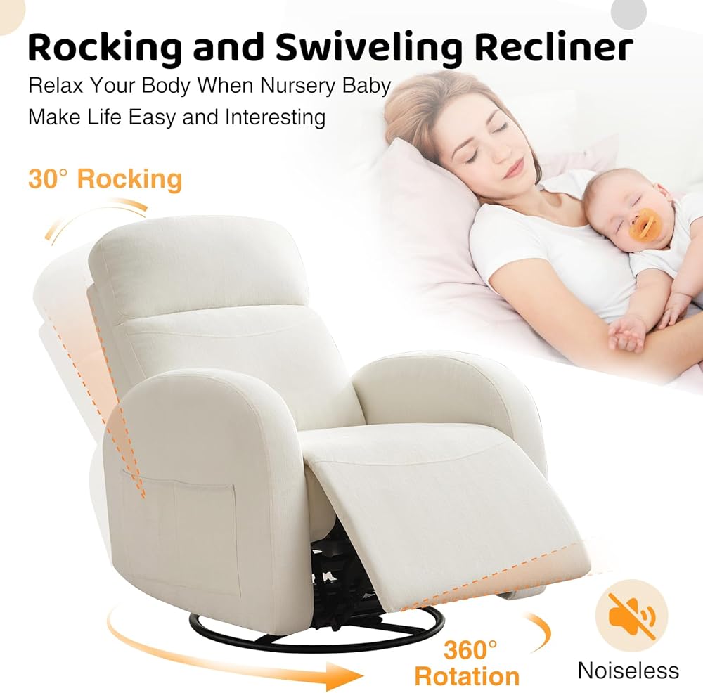 【مناسبة لمزيد من المشاهد】 كرسي Recliner الخاص بنا من دوار الروك مثالي لأي مساحة ، سواء كانت حضانة أو غرفة معيشة أو غرفة نوم أو تلفزيون. يعزز هذا الكرسي الأنيق والمتعدد الوظائف الراحة أينما كنت ، مما يجعله مكان الاسترخاء المثالي لك ولضيوفك. مع القدرة على صخرة ، دوارة ، وتكوين ما يصل إلى 165 درجة ، فإنه يوفر راحة مخصصة لجميع أنشطتك. يجعل التصميم المضاد للخلع والمقاوم للماء من السهل التنظيف والمثالي لأي مساحة.