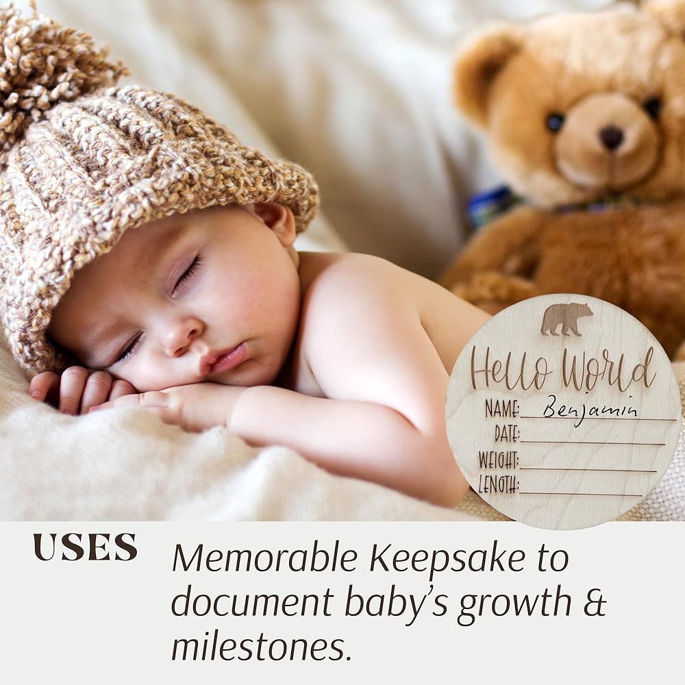 • نعتز باللحظة إلى الأبد مع لوحة إعلان الولادة الخشبية المحفورة المخصصة هذه - تذكارًا يحمل التفاصيل الثمينة لليوم الأول لطفلك!