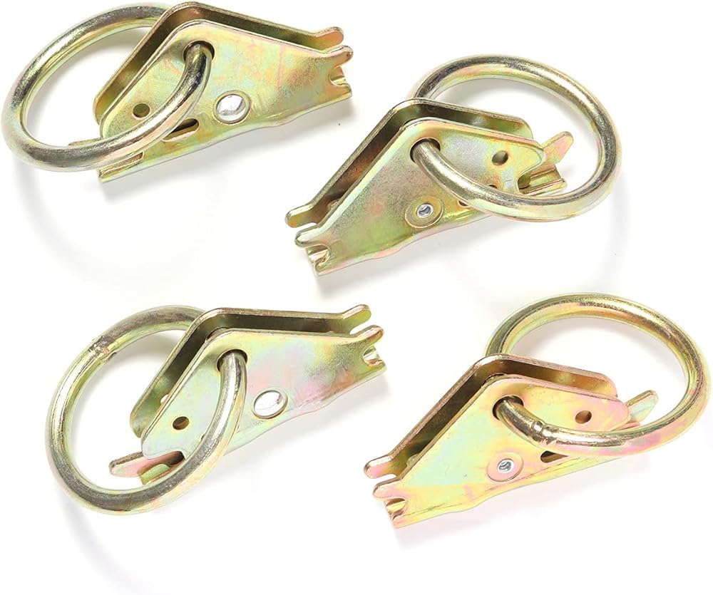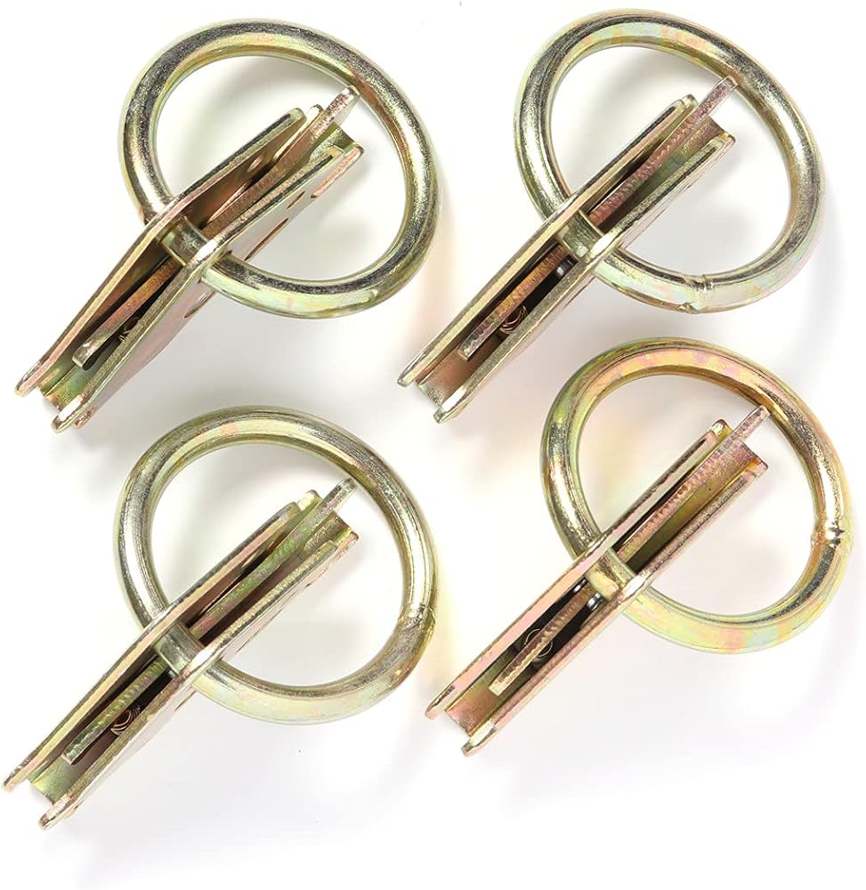 4 قطع من الصلب E-Track O Ring مرساة لأسفل لنظام المسار E، البضائع في مقطورة مسطحة مغلقة، شاحنة، شاحنة صغيرة، شاحنة صغيرة، أحزمة دراجة نارية، مشابك حلقة دائرية شديدة التحمل مع تركيب زنبركي للمسار الإلكتروني ثابت