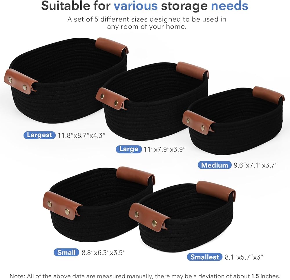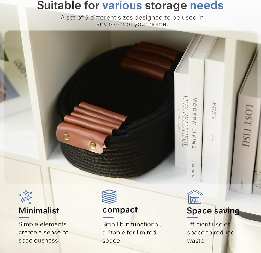 مجموعة من 5 قطع للتنظيم النهائي-الحياة متعددة الحجم ، متعددة الاستخدامات ، أصبحت الحياة فوضوية ، لكن منزلك ليس عليه! تتضمن مجموعة السلة المنسوجة المكونة من 5 قطع أحجام مختلفة لتناسب كل احتياجات: ✔ الحضانة والمونتيسوري-ألعاب المتجر أو الكتب أو أساسية الأطفال. ✔ غرفة المعيشة والمدخل - تنظيم أجهزة التحكم عن بعد أو المفاتيح أو الفواكه. ✔ الحمام - احتفظ بالمناشف أو أدوات النظافة أو لفات مدسوس بدقة. ✔ مستلزمات الحيوانات الأليفة - مثالية لألعاب الكلاب أو أسرة القط. ✔ غرفة النوم والمكتب - المجوهرات أو الملحقات أو الفوضى المكتبية.