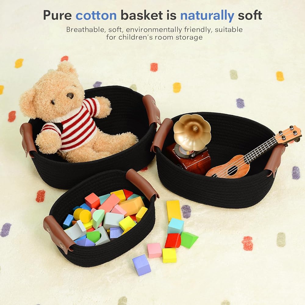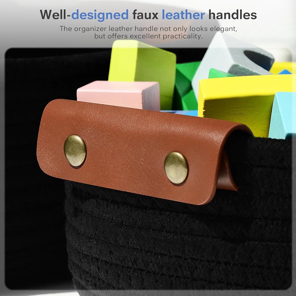 القطن الطبيعي + مقابض جلدية مميزة - آمنة ودائمة : قلق بشأن طفلك أو مضغ الحيوانات الأليفة على السلال؟ لدينا مصنوعة من القطن الطبيعي-غير سامة ، خالية من المواد الكيميائية ، وآمنة للأيدي الصغيرة (والفواه!). تضيف المقابض الجلدية المقواة المتانة مع الحفاظ على النهاية الخالية من الخدش التي لن تلحق الضرر بأثاثك.
