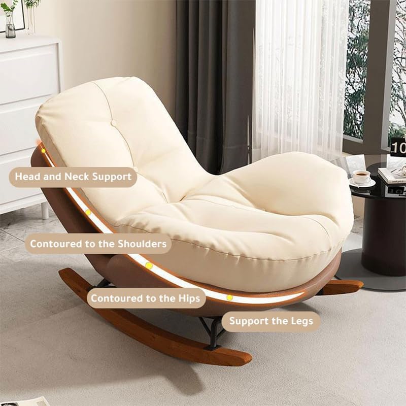 تصميم هزاز على غرار المزلقة: يحتوي كرسي Rocking Recliner على تصميم ، ويدعم منحنى جسم الإنسان ، وزاوية الإمالة المناسبة تعطي الجسم مقدارًا مناسبًا من الراحة ، وحماية العمود الفقري الخاص بك أثناء قضاء وقت مريح. يخلق تصميم هزاز على غرار المزلجة ، استنادًا إلى مبادئ الزلاجات ، قاعدة هزاز لمنع التحول ، وضمان سلامتك أثناء الاستمتاع بلحظات الاسترخاء الخاصة بك